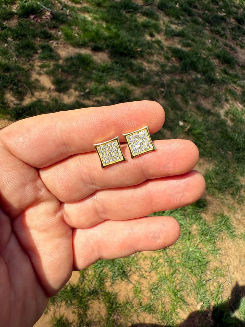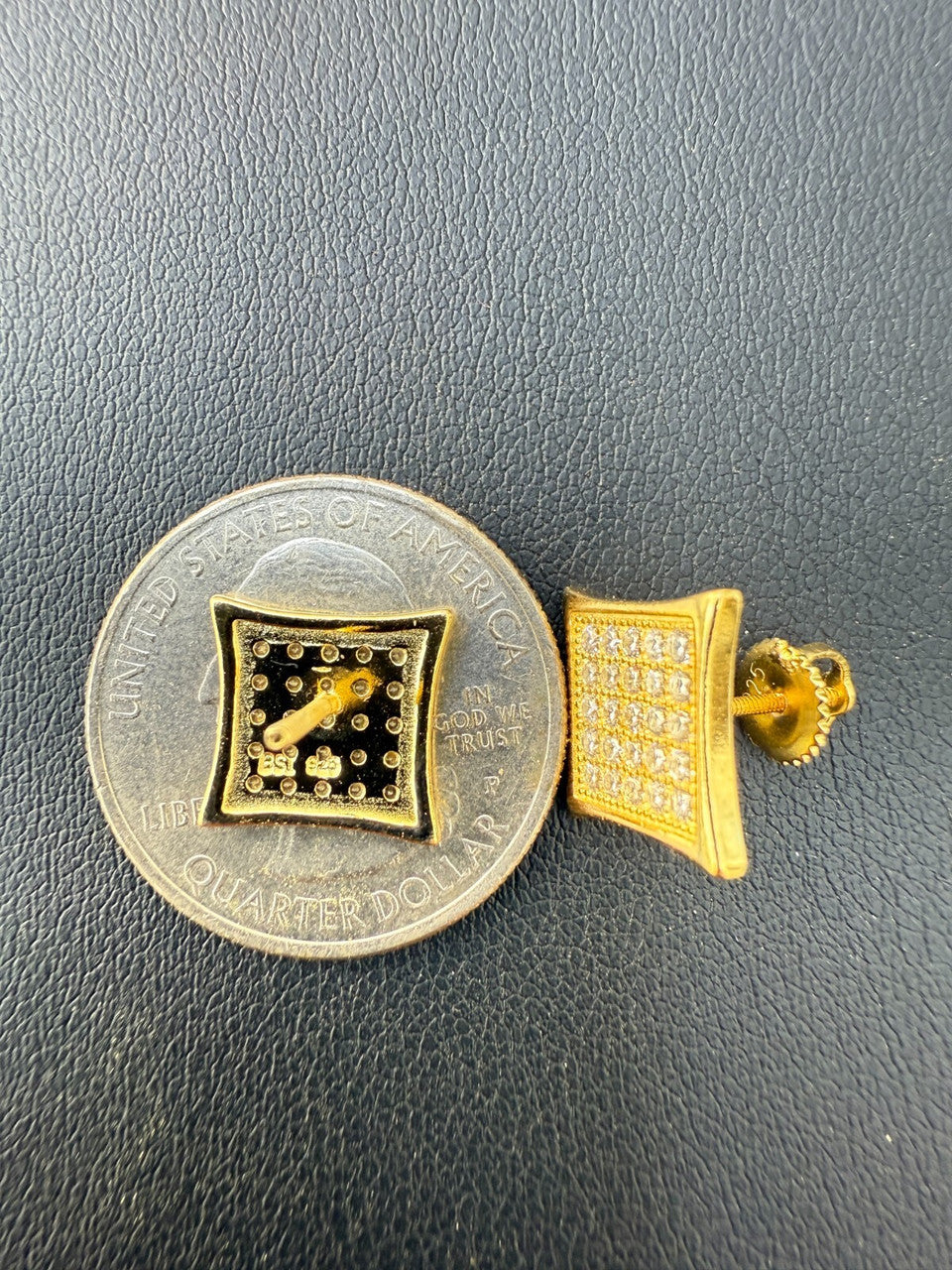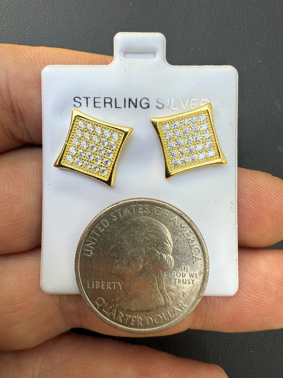 14K Gold Over 925 Silver Kite Earrings Iced CZ 11mm Mens Ladies - WHOLESALE DEAL