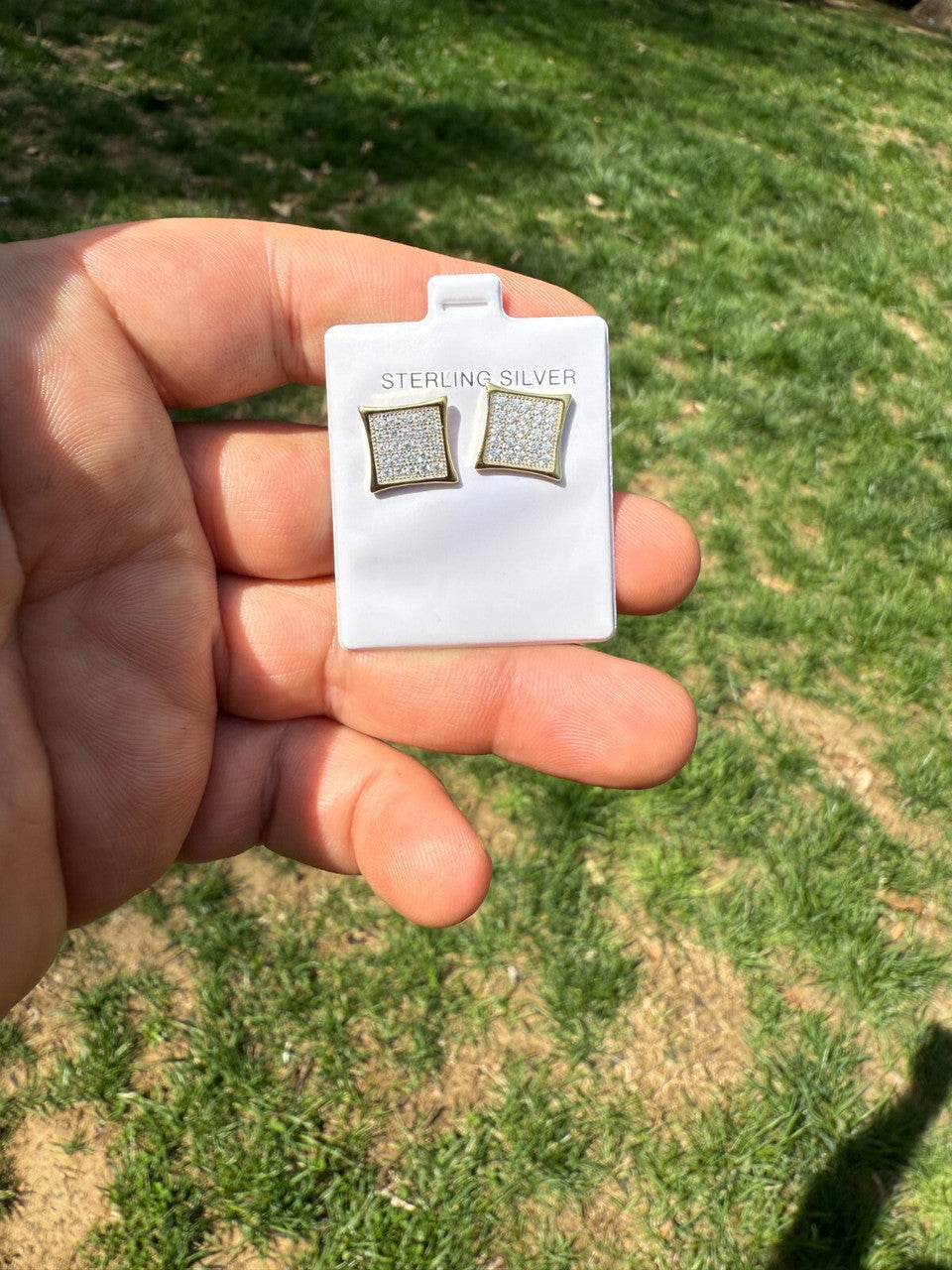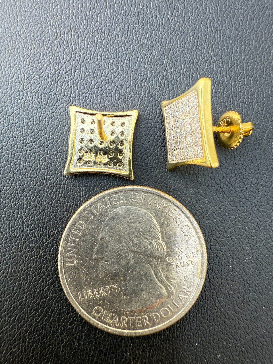 14K Gold Two Tone Real 925 Silver Kite Earrings Iced CZ 11mm - WHOLESALE DEAL