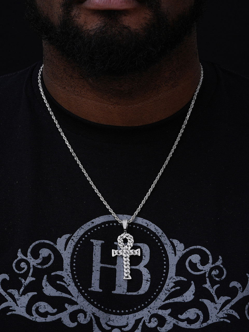 Ankh Cuban Link Cross Pendant - 14k Gold Vermeil Or 925 Silver - CZ Stones - Medium 2"