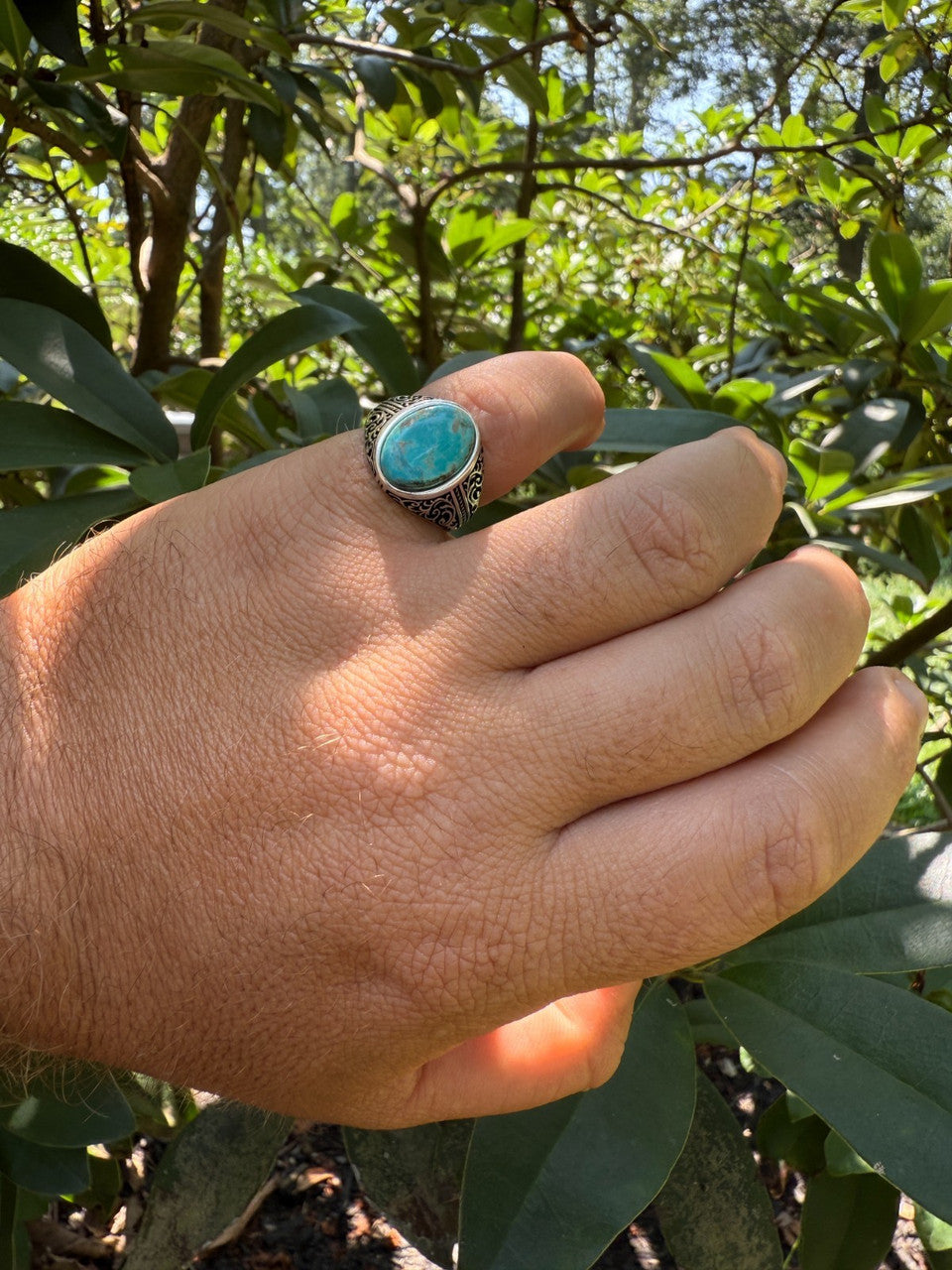 Arabian Nights Ring - 925 Silver Oxidized - Genuine Blue Turquoise Stone