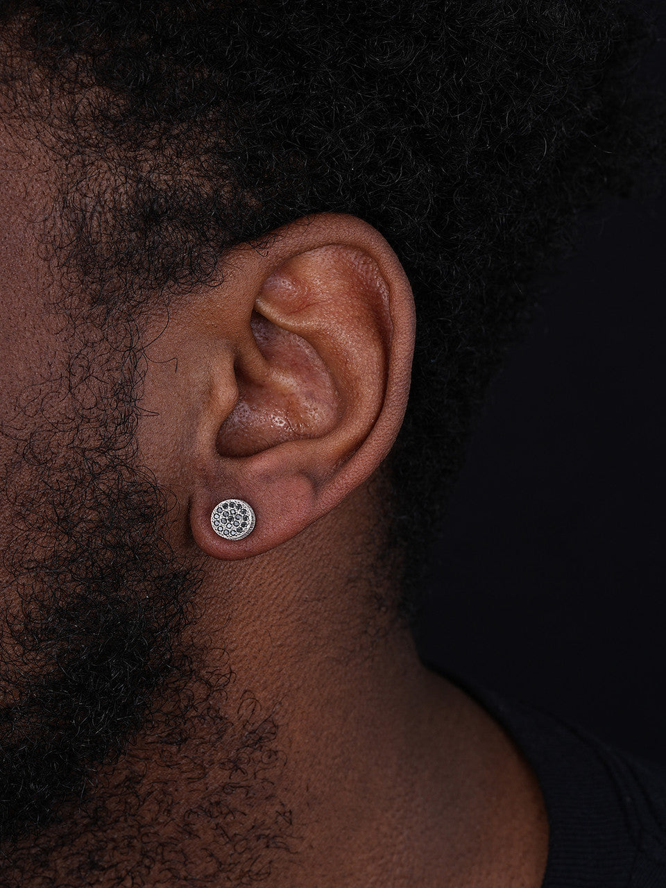 Black MOISSANITE 3D Round Iced Out Earrings - 925 Silver - 8mm