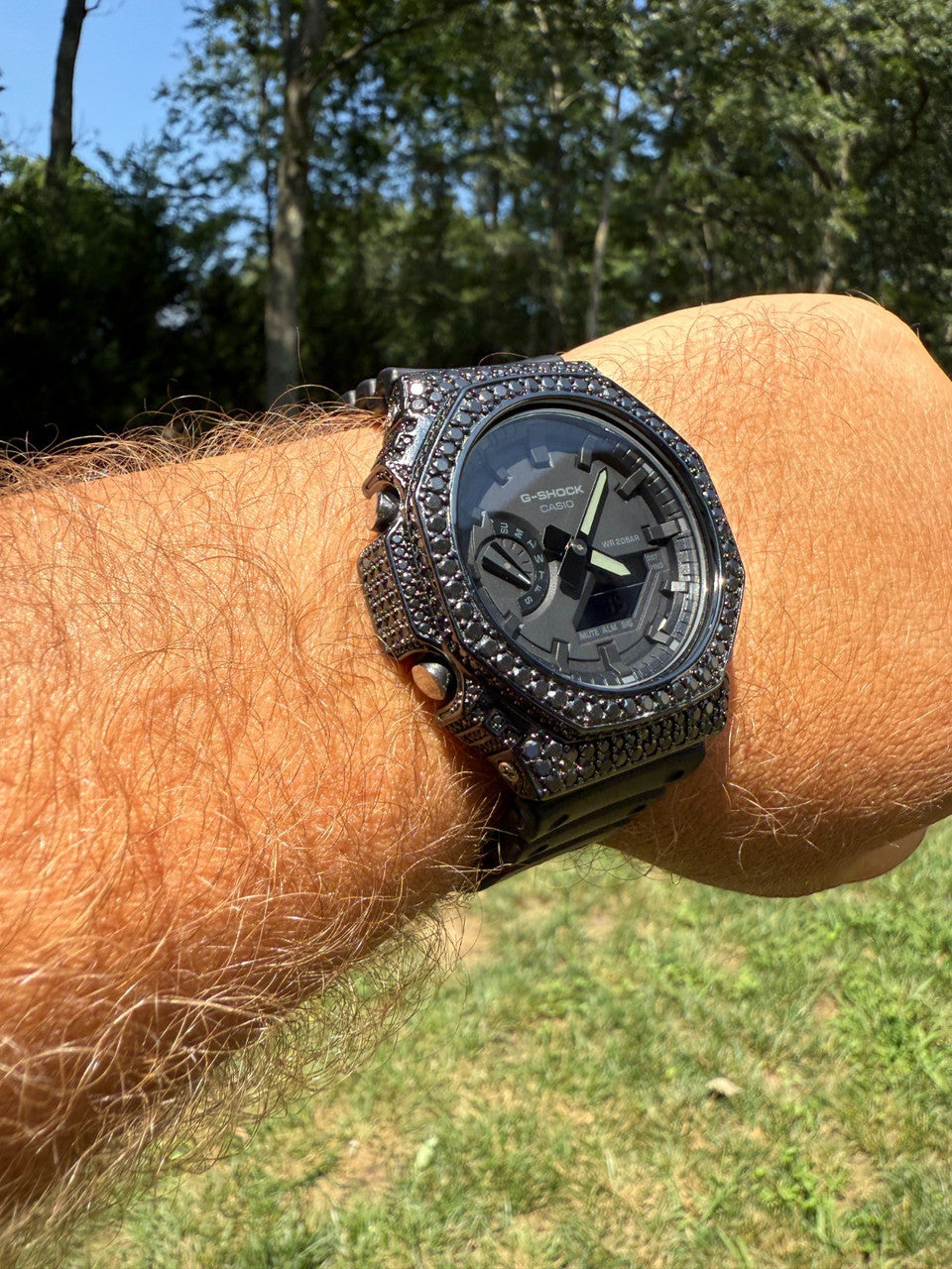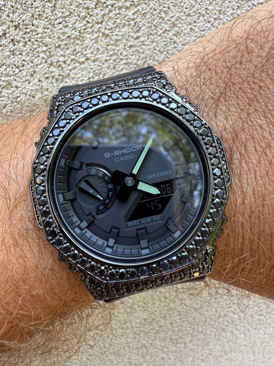 BLACK MOISSANITE Real Black 925 Silver Iced Casio G Shock GA2100 Hip Hop Watch