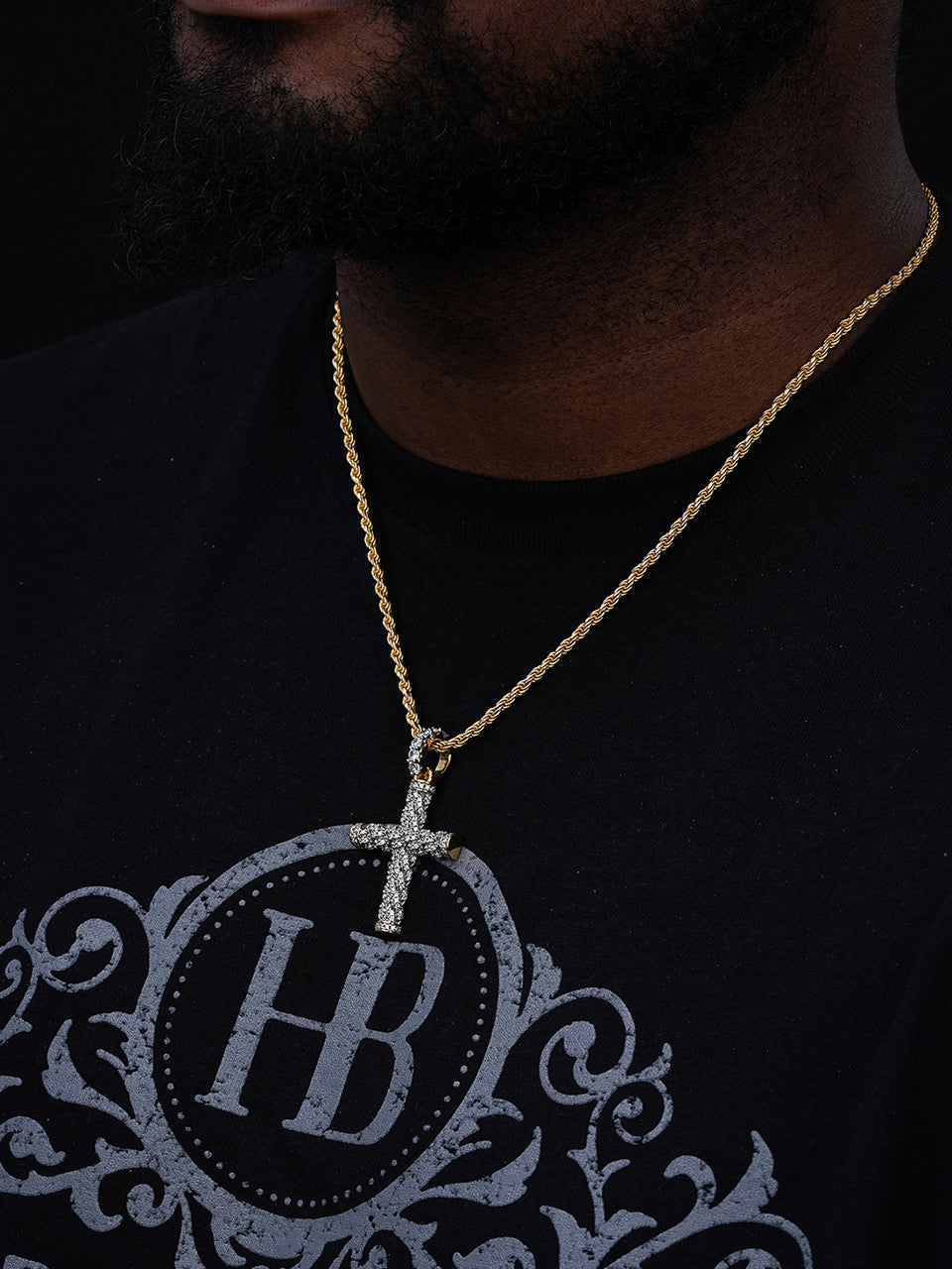 Braided Rope Iced Cross Pendant- 14k Gold Vermeil 925 Silver - CZ Stones - Medium 2"