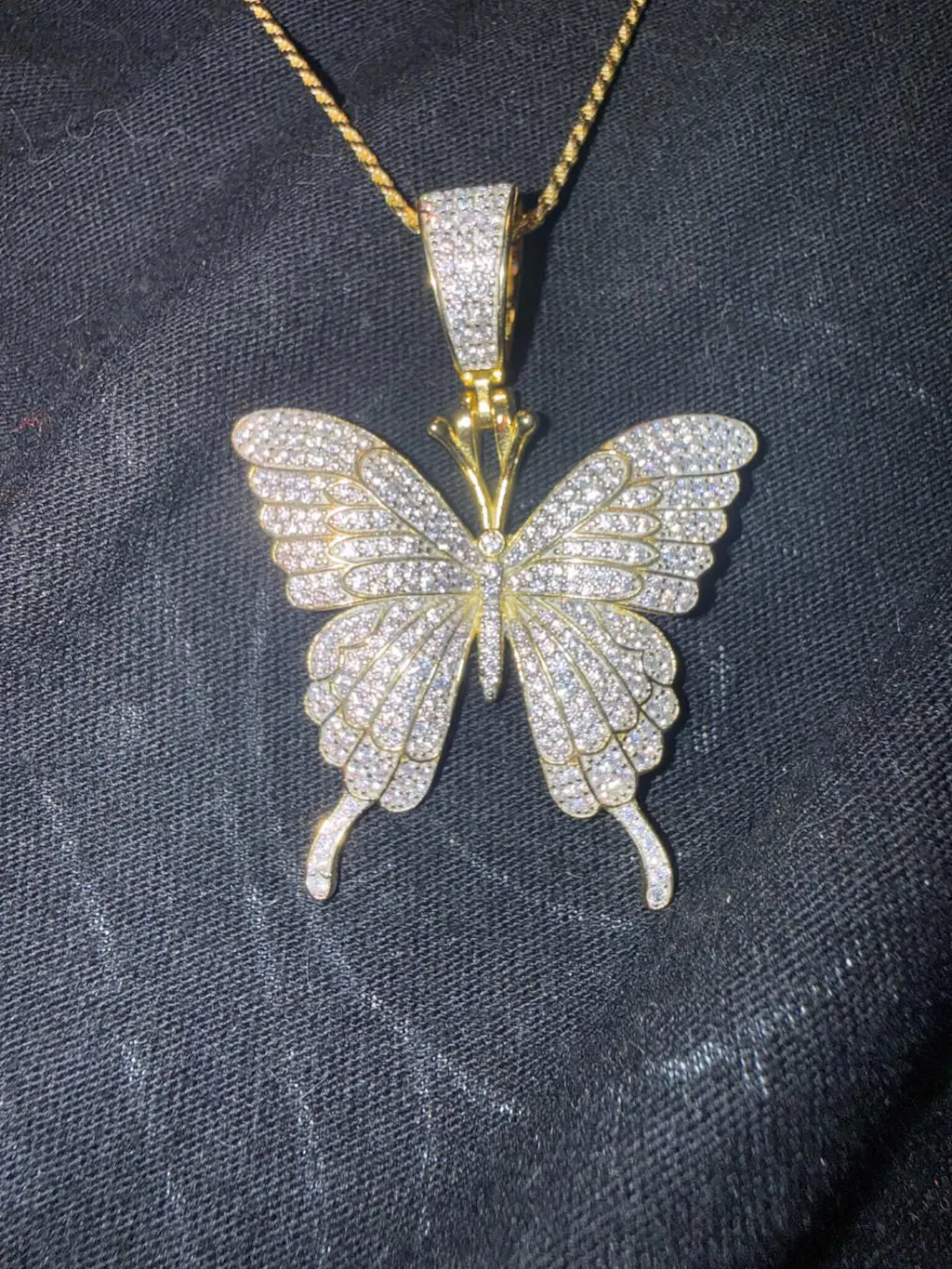 Butterfly Iced Out Pendant- 14k Gold Vermeil Or 925 Silver - CZ Stones - 2 Sizes 1.25"-2.25"