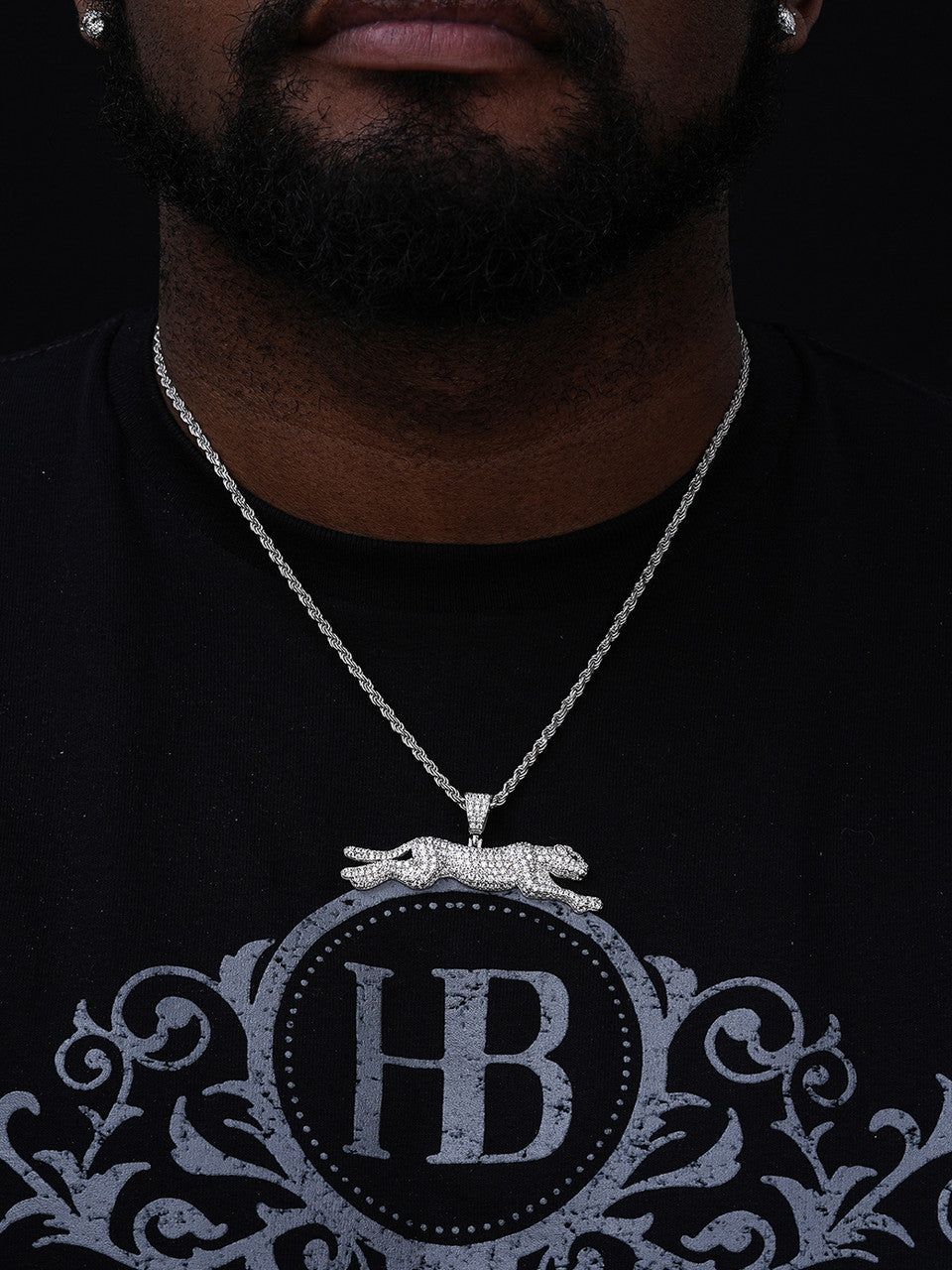 Cheetah Iced Out Pendant - 14k Gold Vermeil Or 925 Silver - CZ Stones - Large 2.5"