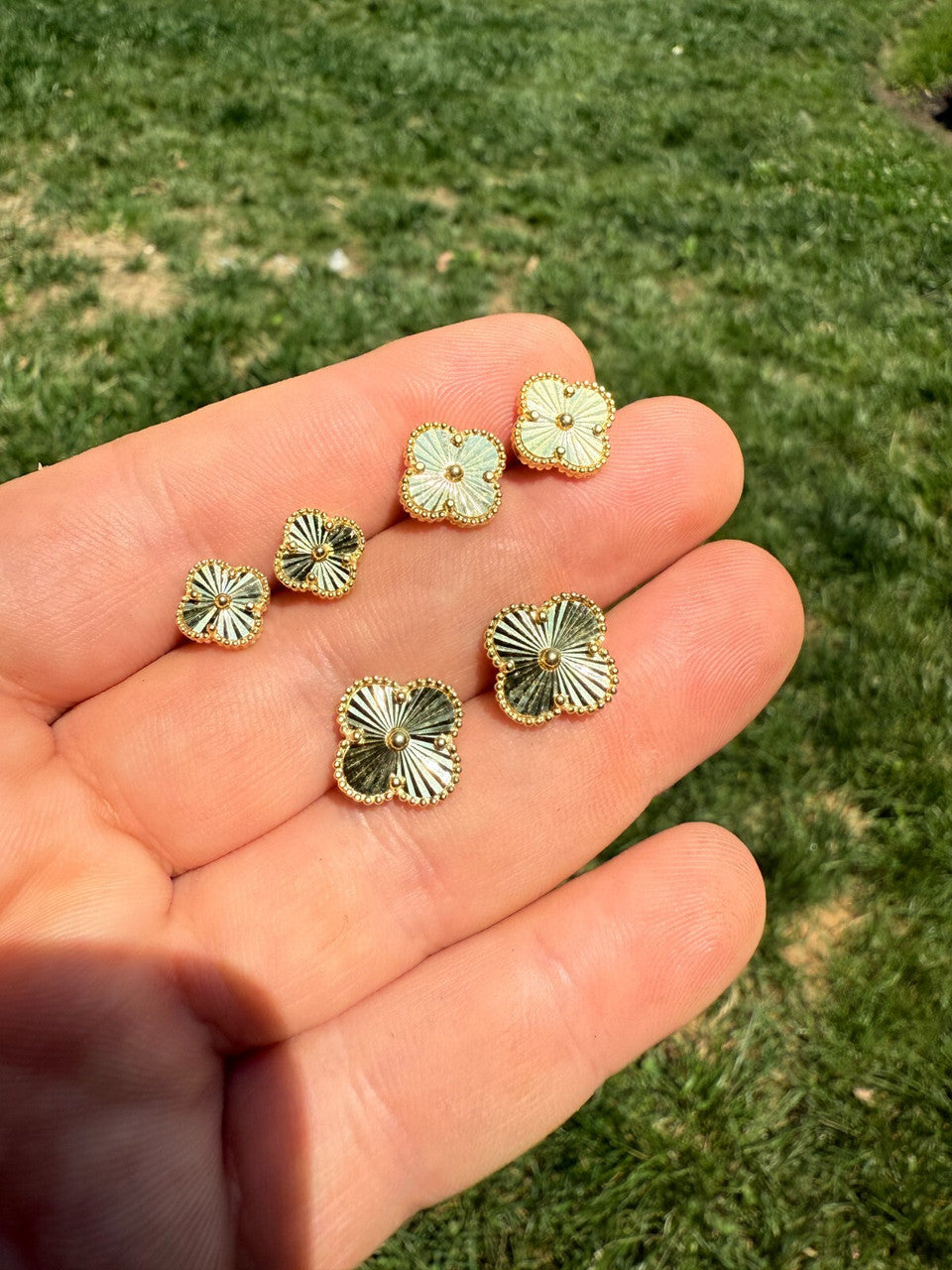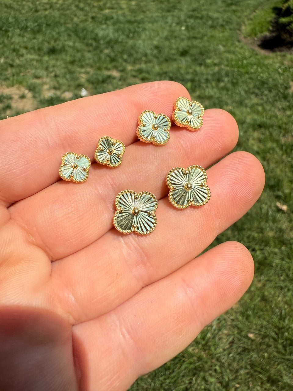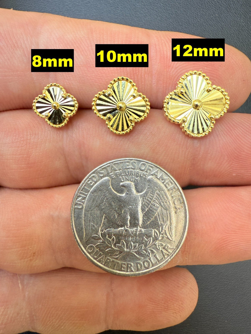 Diamond Cut Clover Earrings - 14k Gold Vermeil 925 Silver - 8mm-12mm