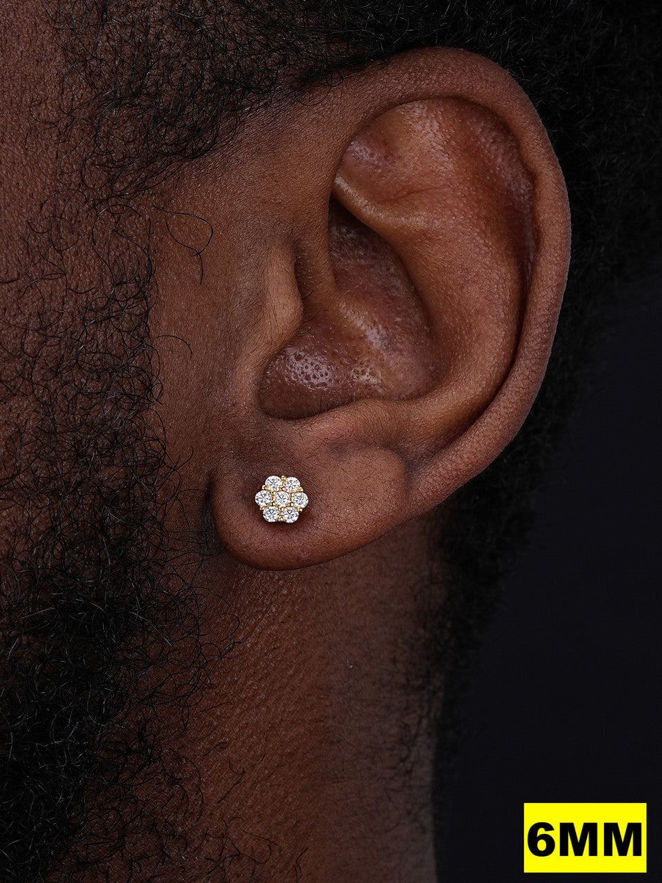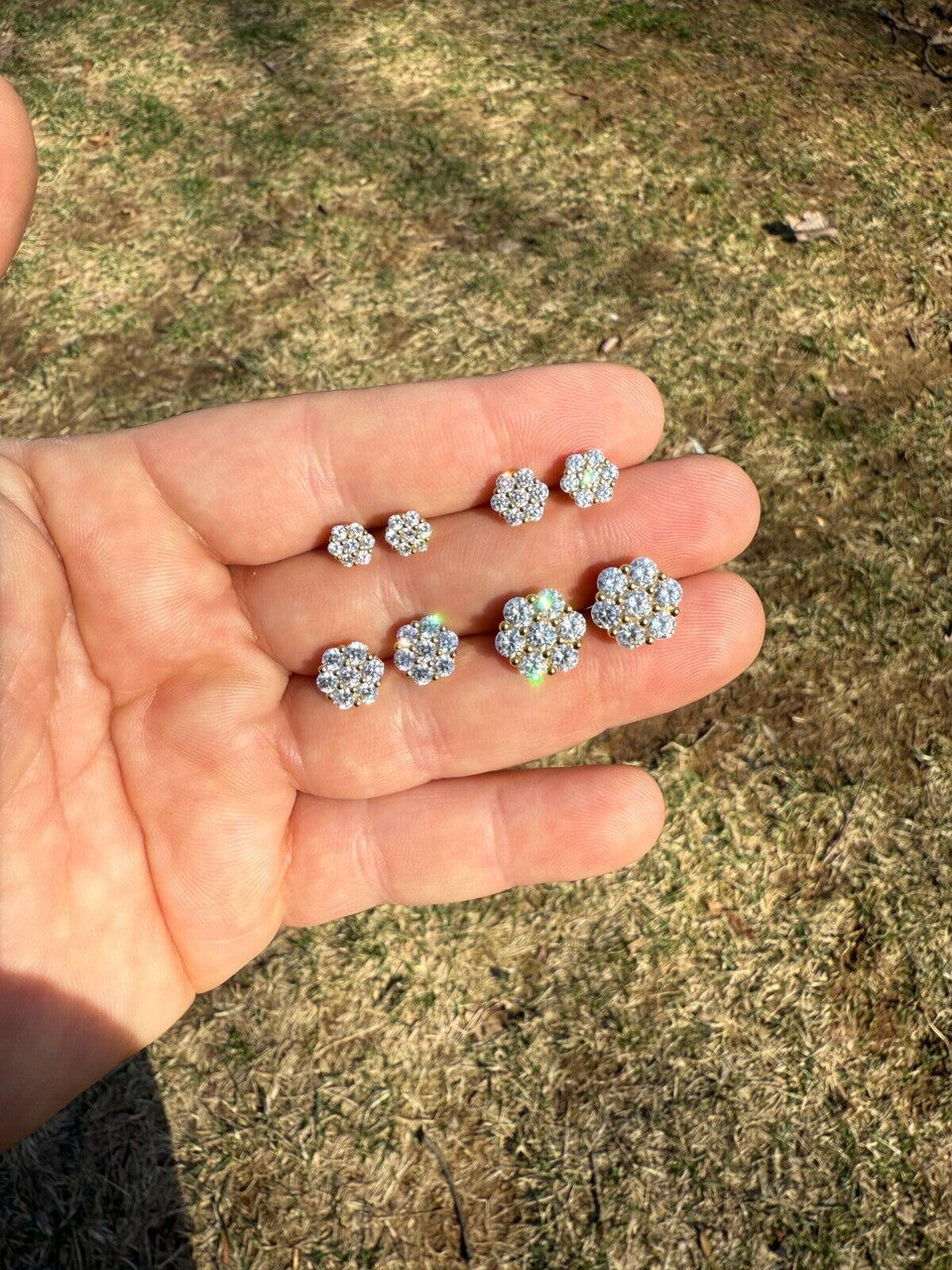 Cluster Flower Set Earrings Real 14k Gold Over 925 Silver 6-12mm Iced CZ Stones