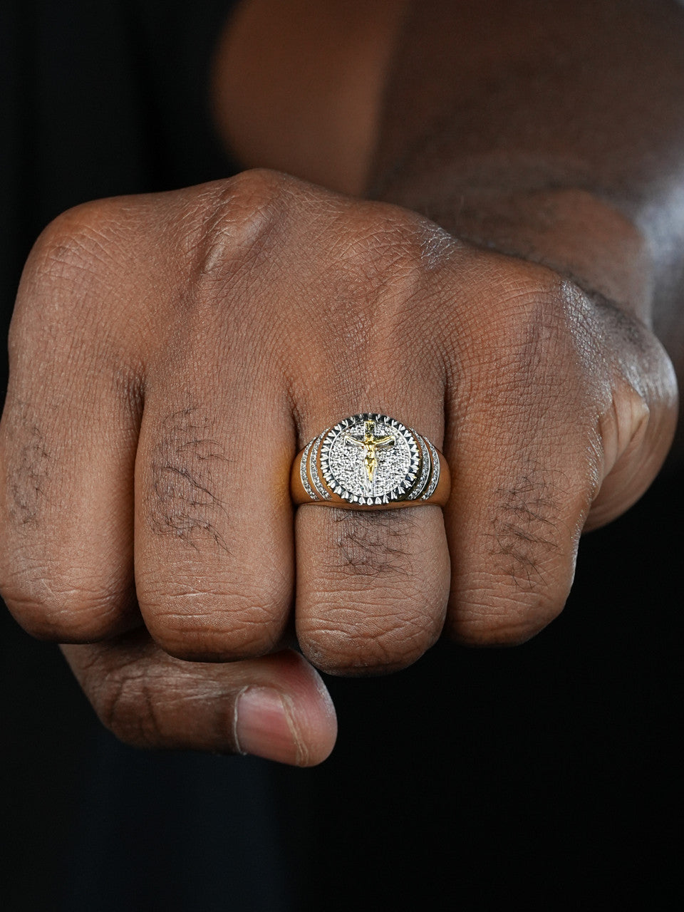 Cross Coin Ring - 925 Silver & Gold Accent - CZ Stones