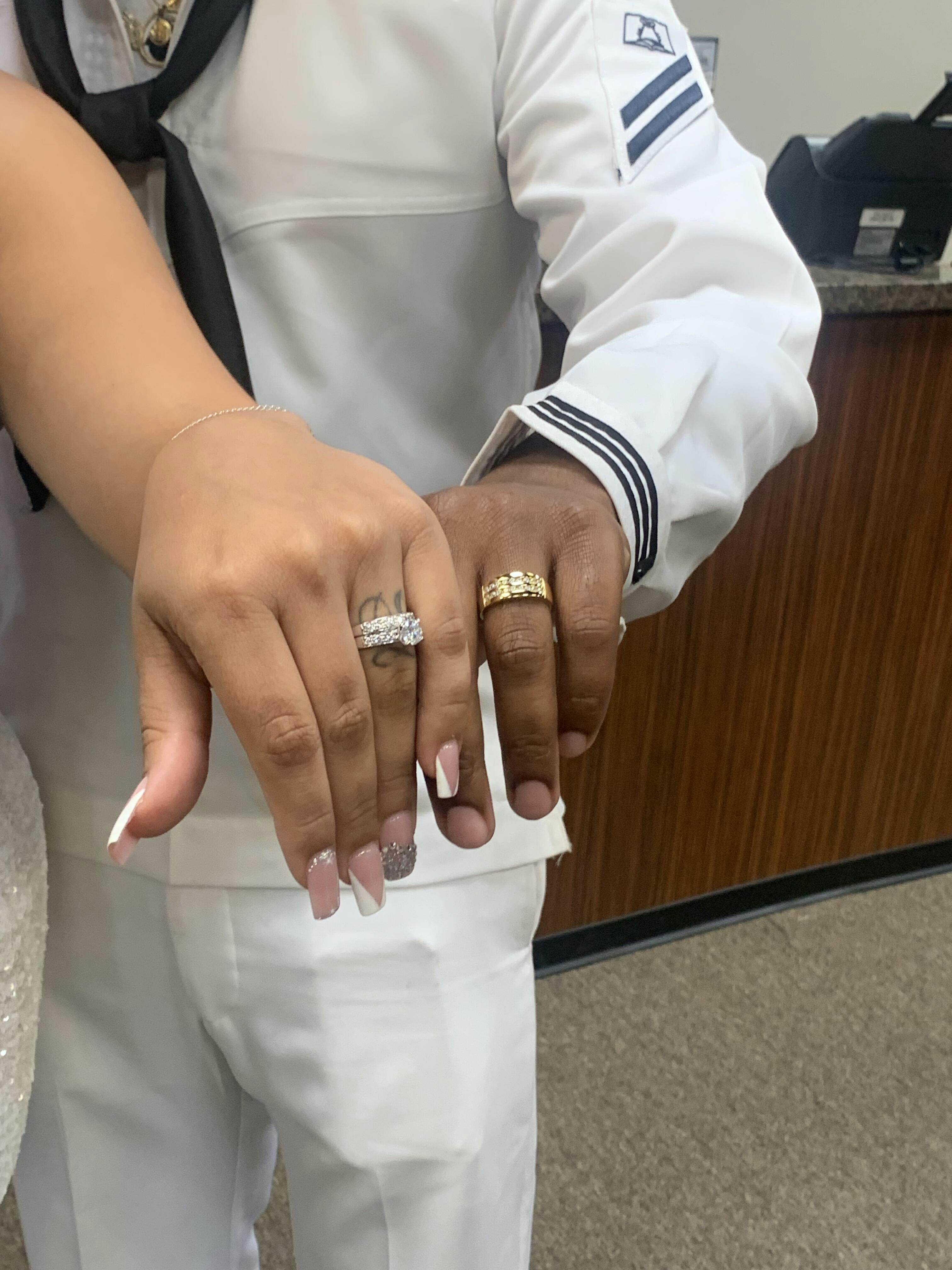 Me and my husband decided to pick each others ring and letās just say we both did amazing! My ring was not from here but this is the only pic I got with his ring. He loves it and I love it. Great quality and beautiful!