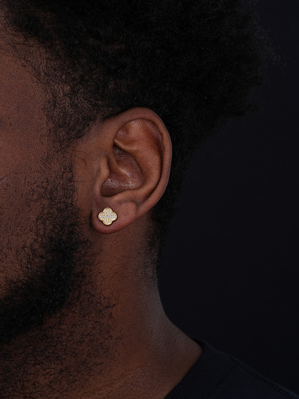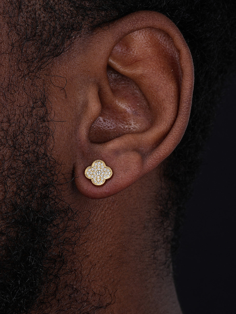Fashionista Clover Earrings - 14k Gold Vermeil 925 Silver - CZ Stones - 9.5mm