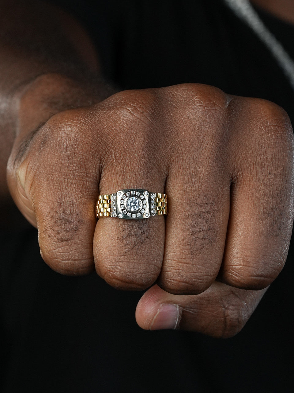 Flexible Rolex Band Ring - 14k Gold Vermeil 925 Silver Two Tone - CZ Stones