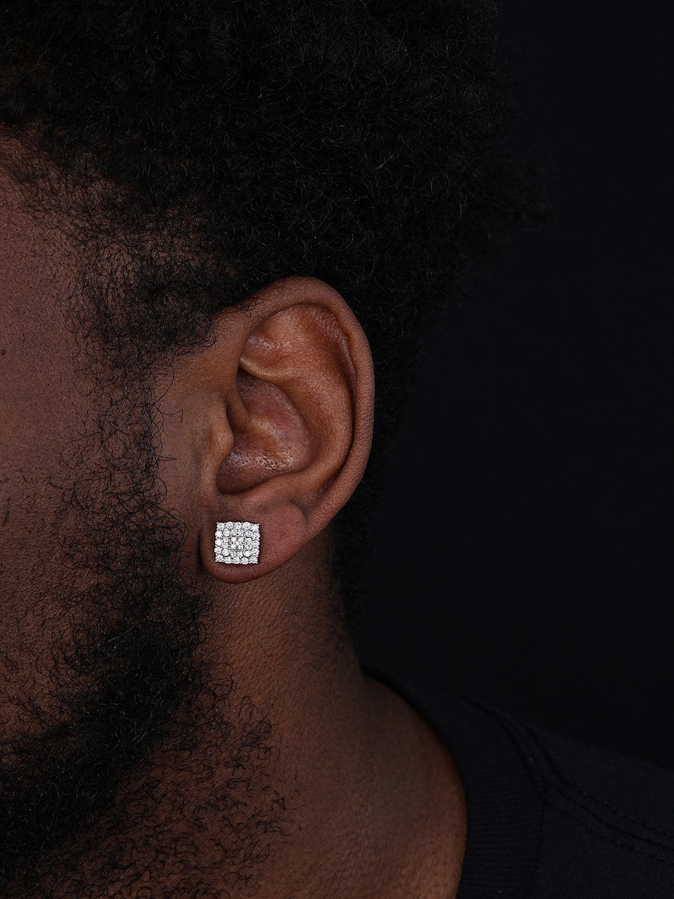 Four Corners Square Iced Out Earrings - 925 Silver - CZ Stones - 10mm