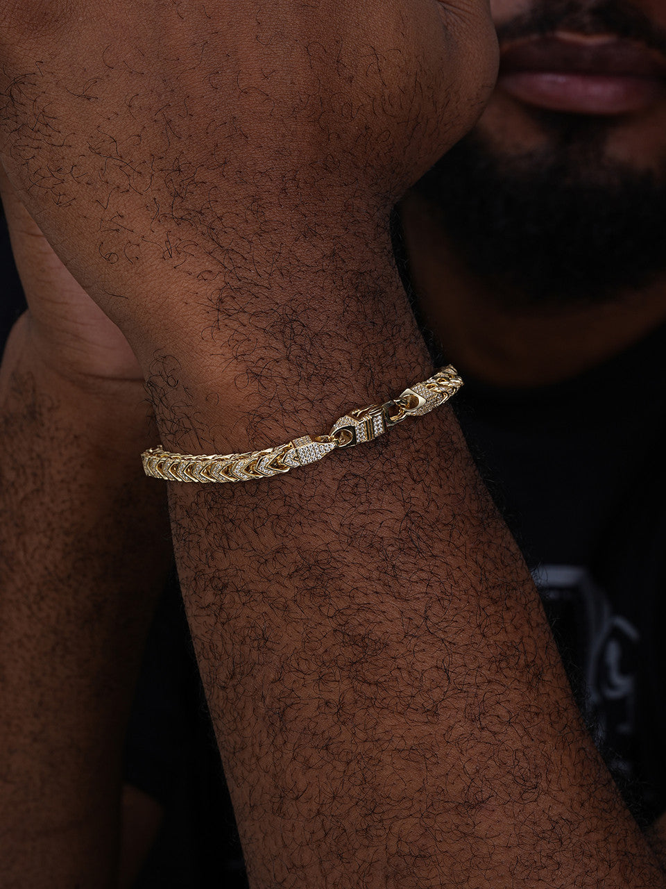 Franco Bracelet Iced Out CZ Stones - 14k Gold Vermeil 925 Silver - 6mm - 7"-8"
