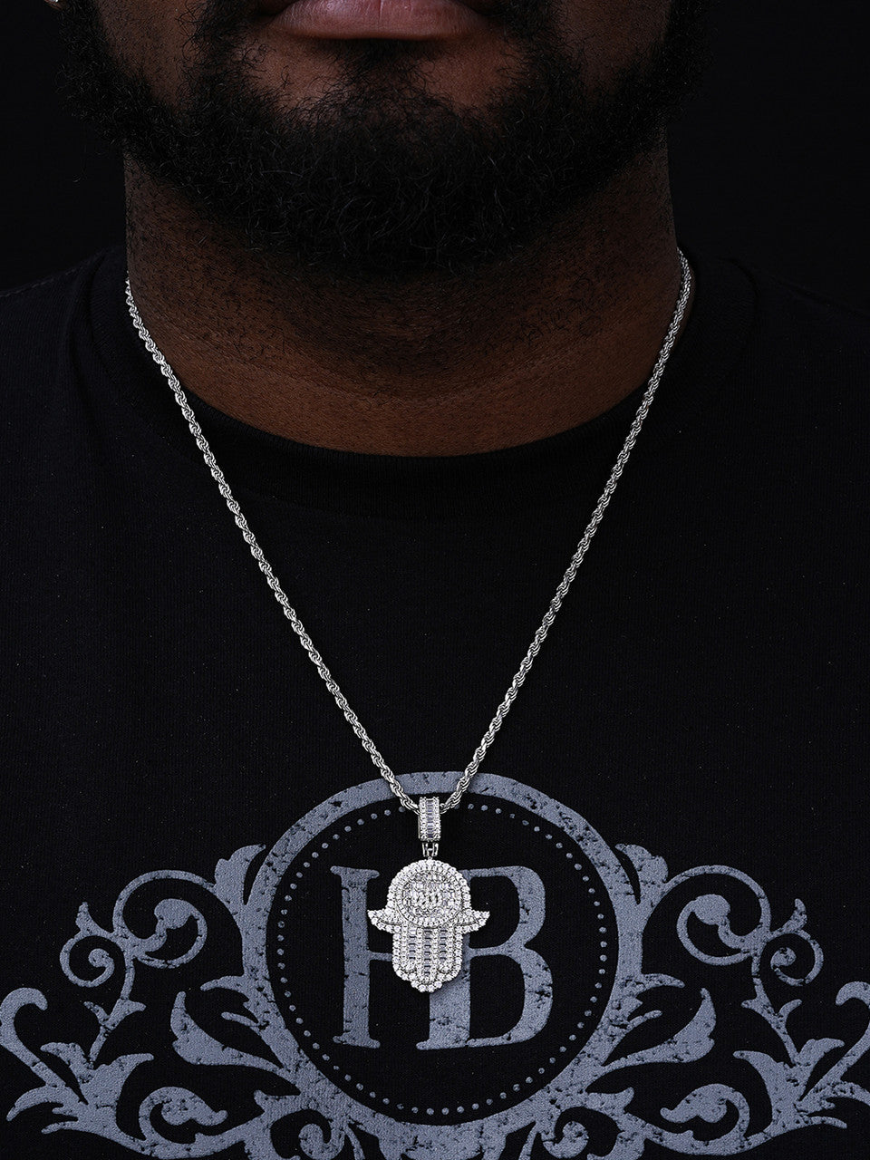 Hand Of Fatima W. Islamic Allah Sign Pendant - 14k Gold Vermeil Or 925 Silver - CZ Stones - Medium 2"