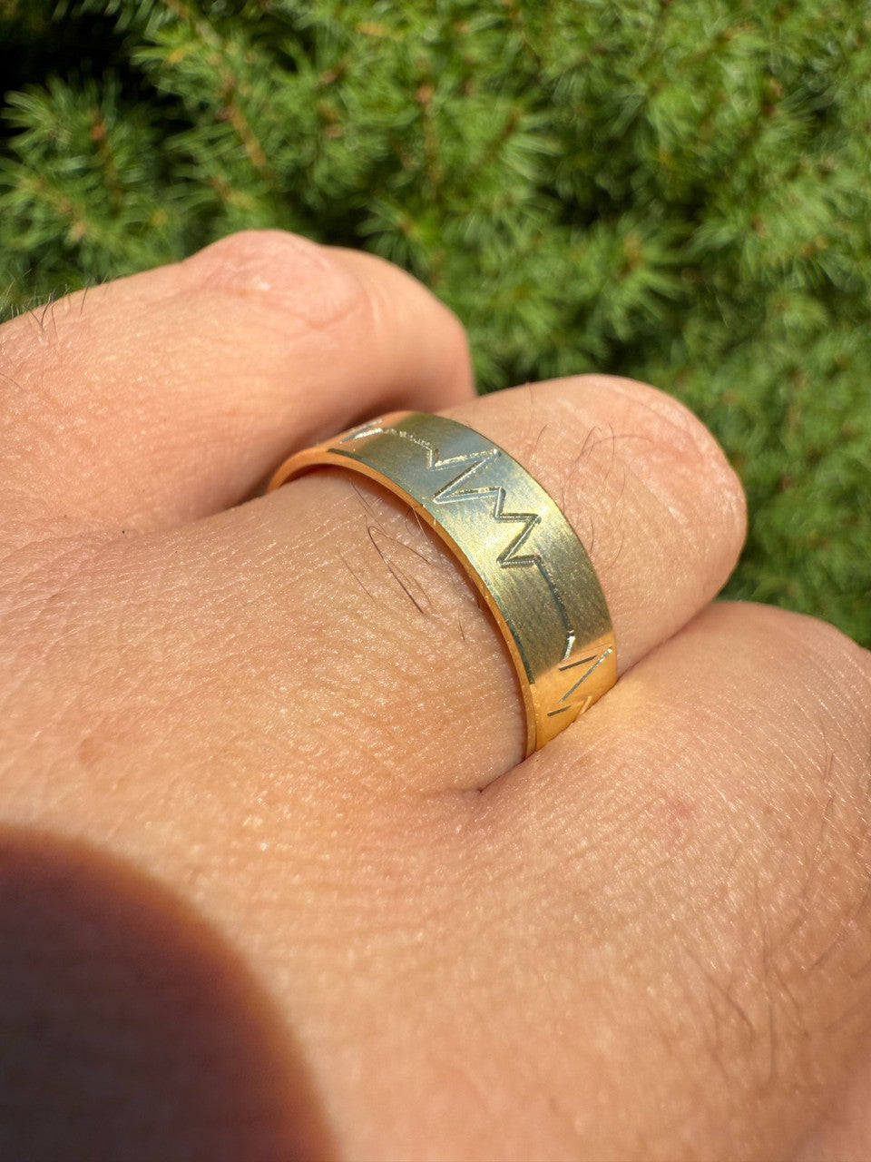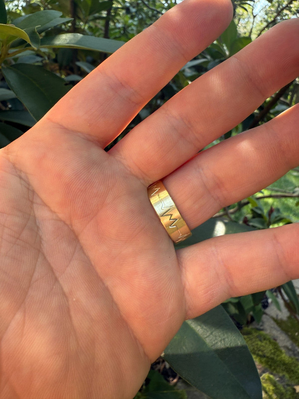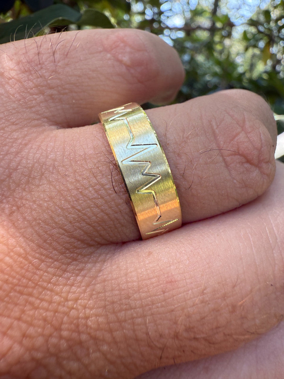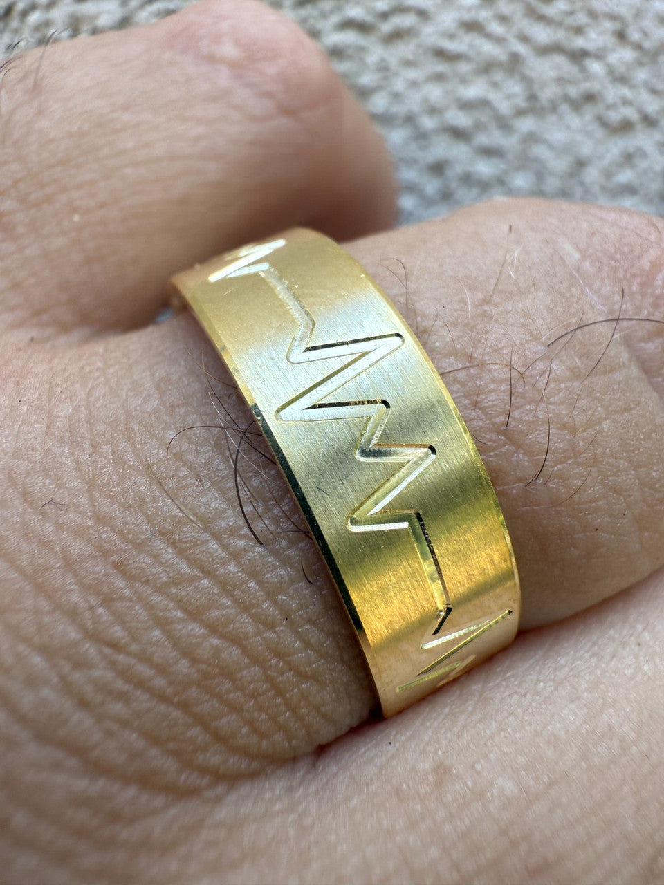Heartbeat Pulse Wedding Band Ring - 14k Gold Vermeil 925 Silver - Plain