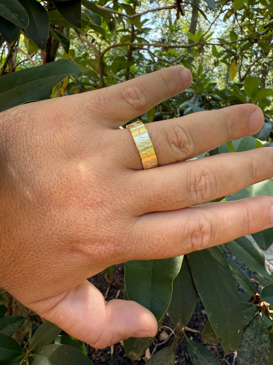 Ring is 7mm wide and is 5-6 grams depending on size!