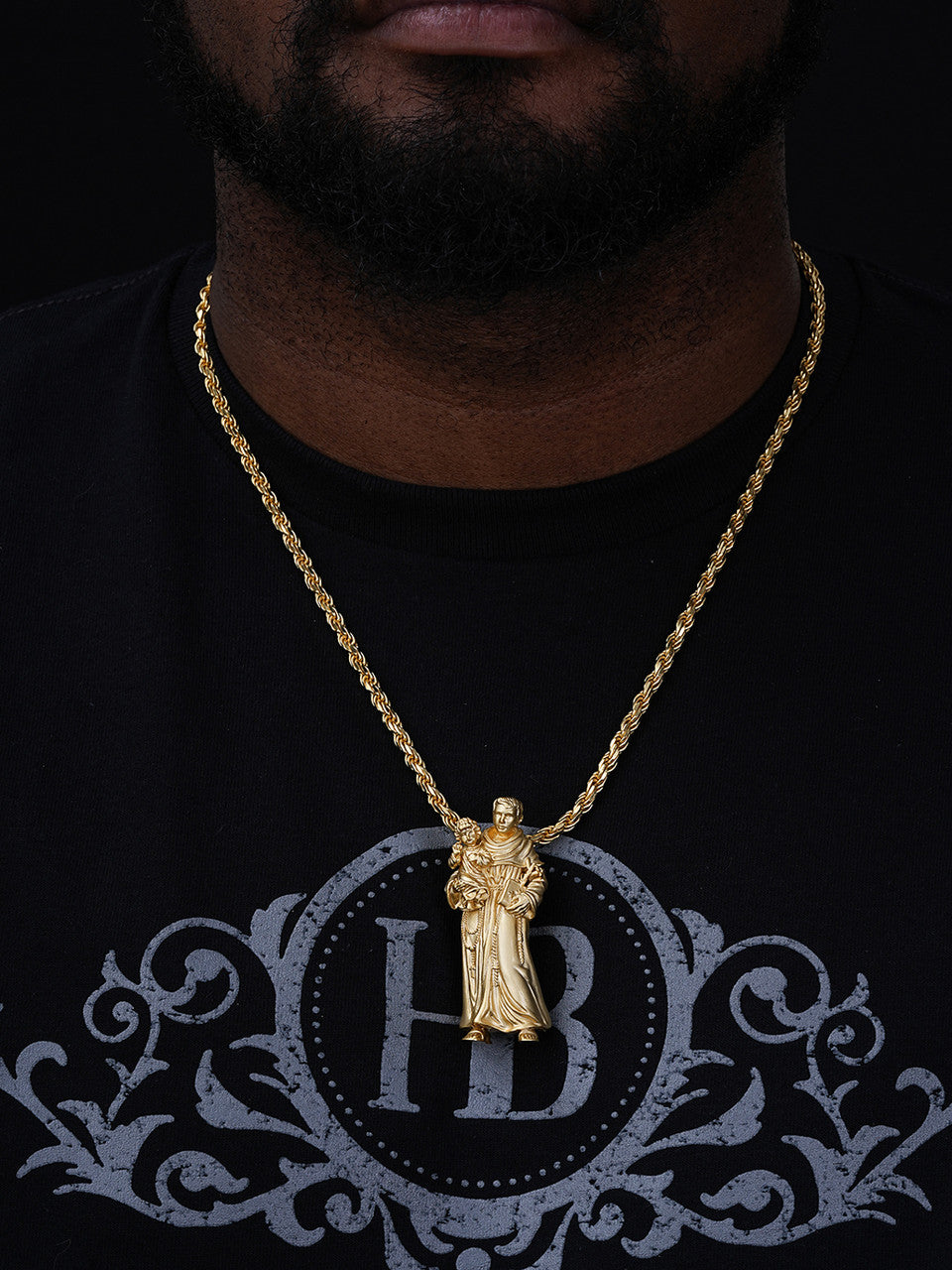 Heavy 3D St Joseph W Baby Jesus Pendant - Sandblasted Matte Finish 14k Gold Vermeil Or 925 Silver - Large 2.5"