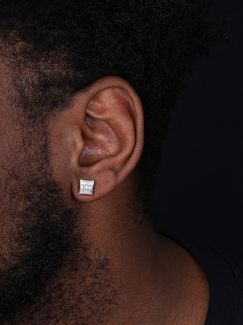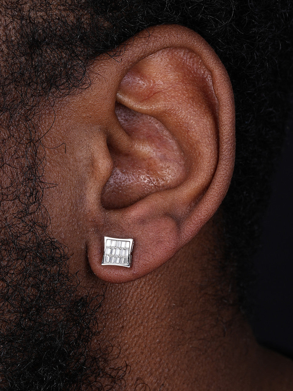 MOISSANITE Modern Baguette Kite Iced Out Earrings - 925 Silver - 8mm