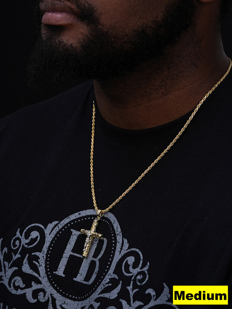 THIS CROSS IS NOT MEANT TO BE WORN ON A THICK CHAIN.