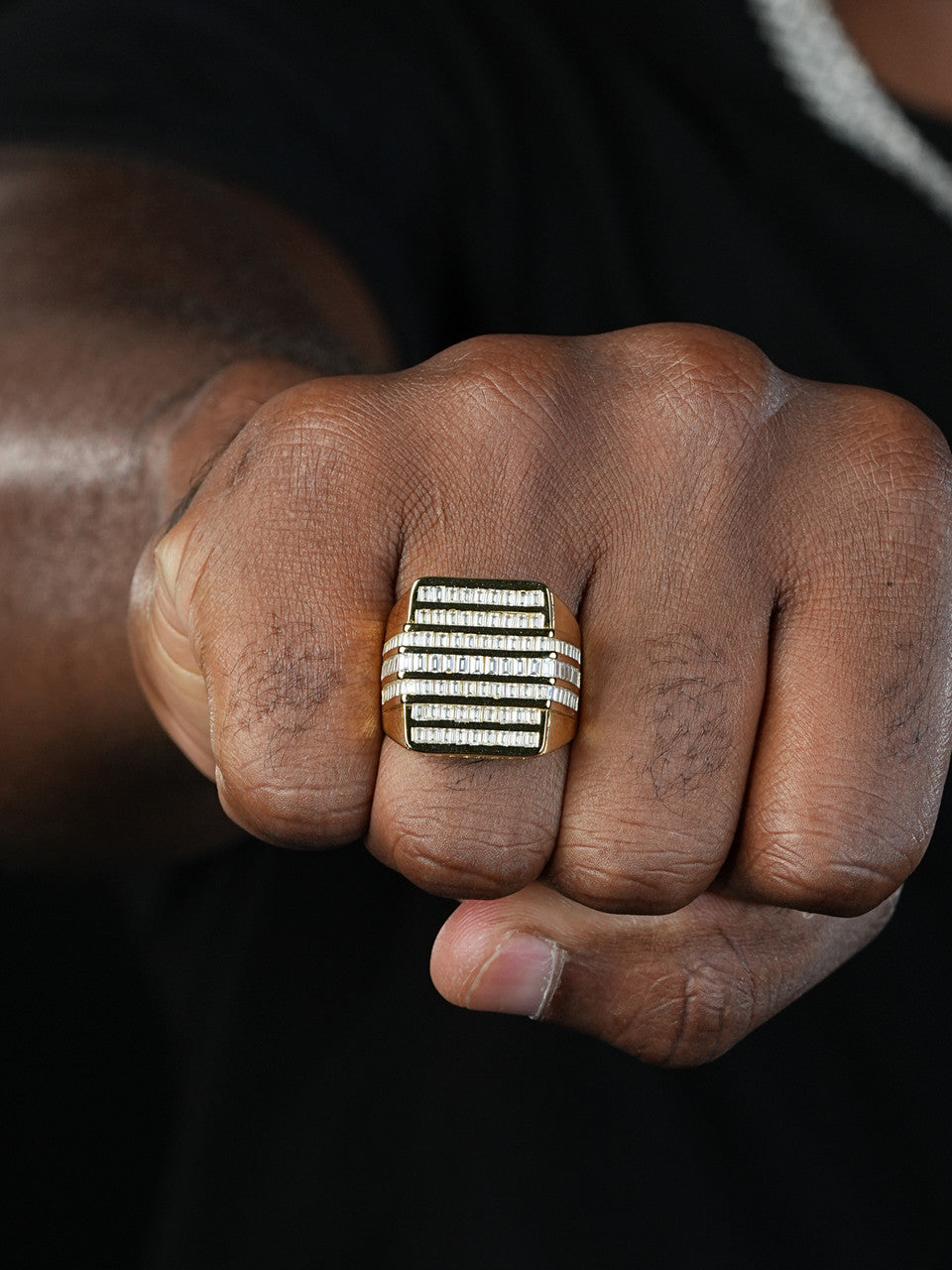 Gorgeous gold mens baguette ring