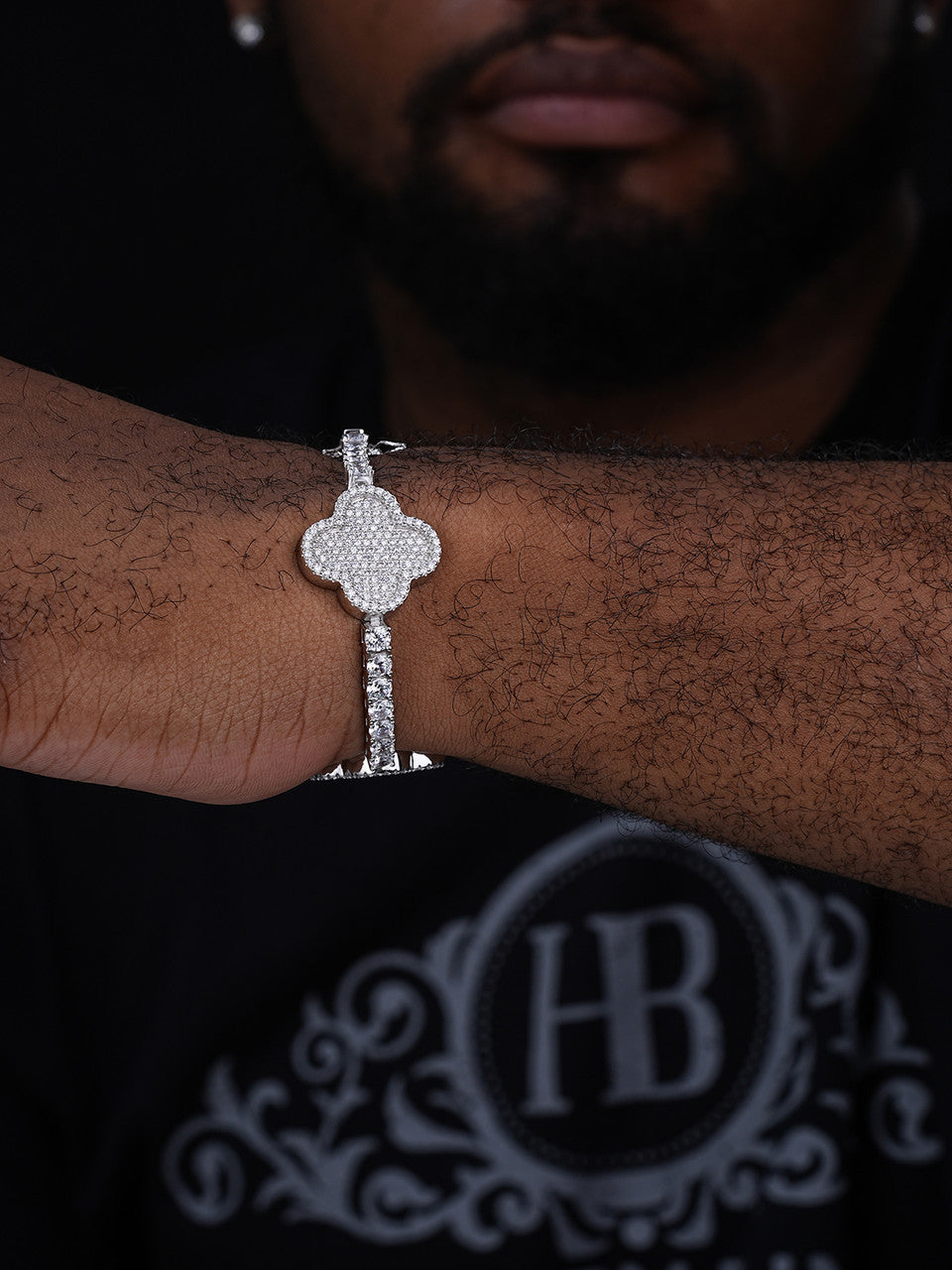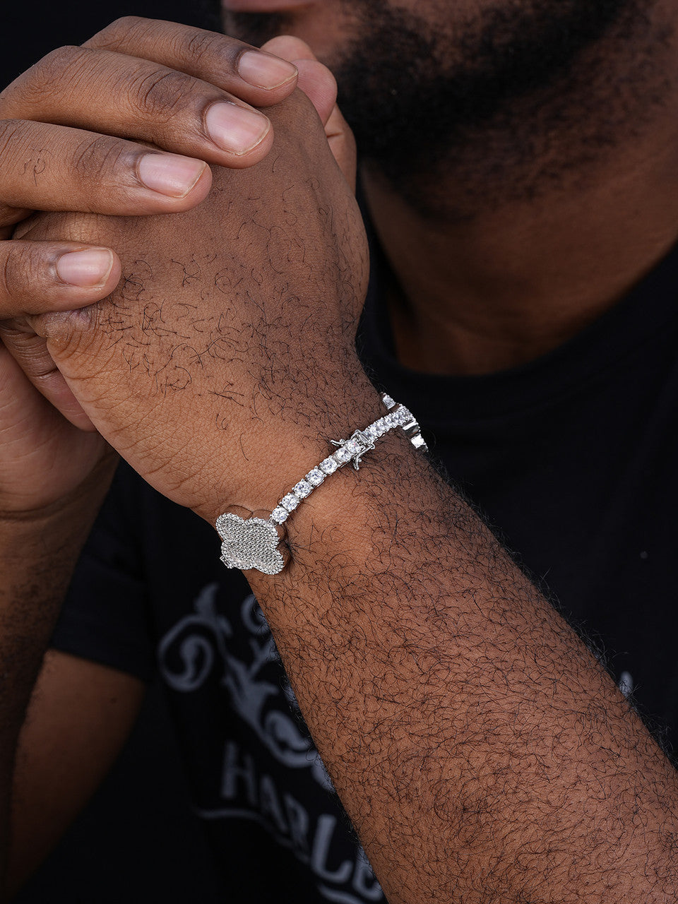 Men's or Ladies iced tennis bracelet with clover charms