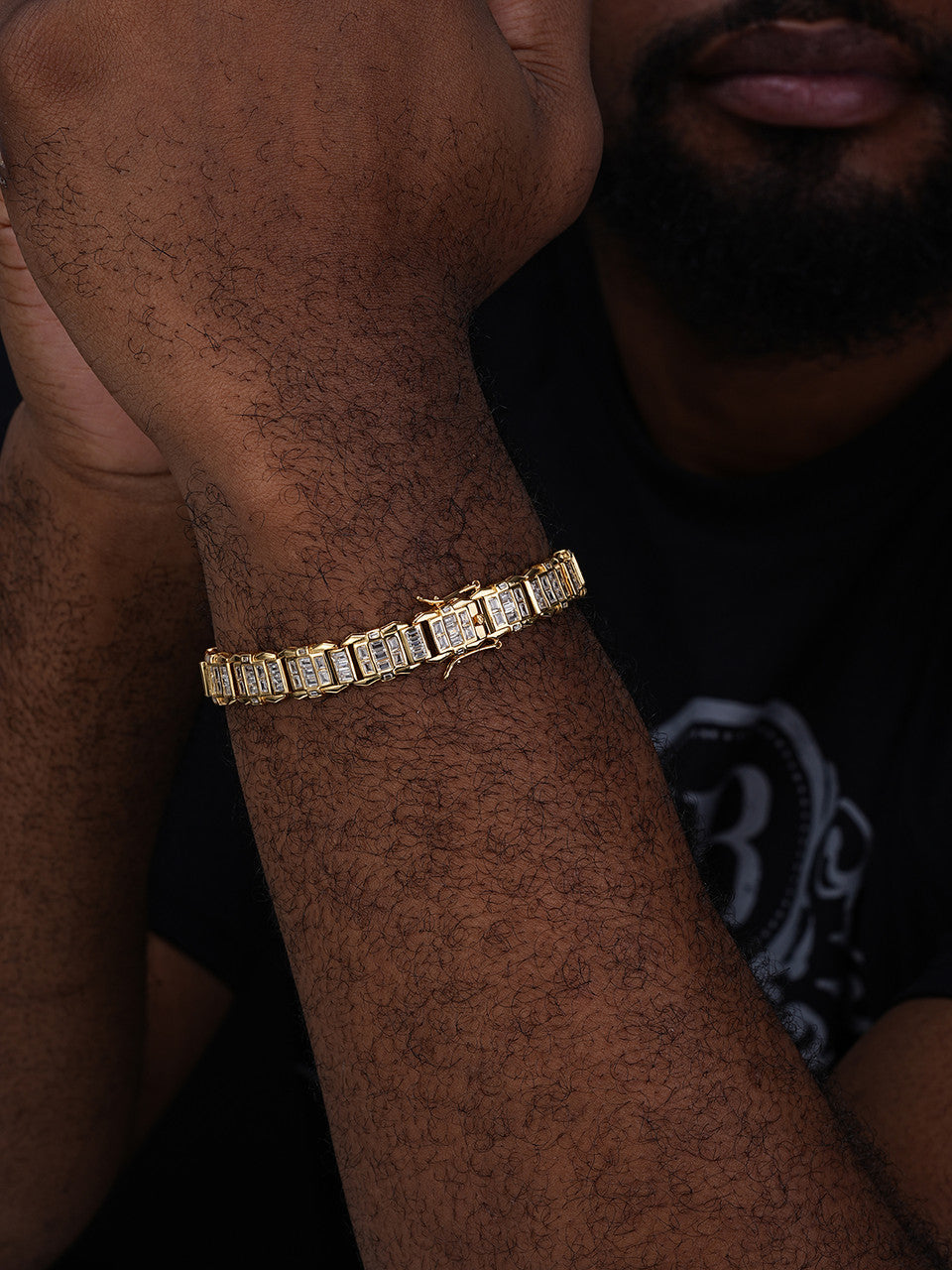 NYC Lights Bracelet Baguette Iced Out CZ Stones - 14k Gold Vermeil 925 Silver - 11mm - 7"-8.5"