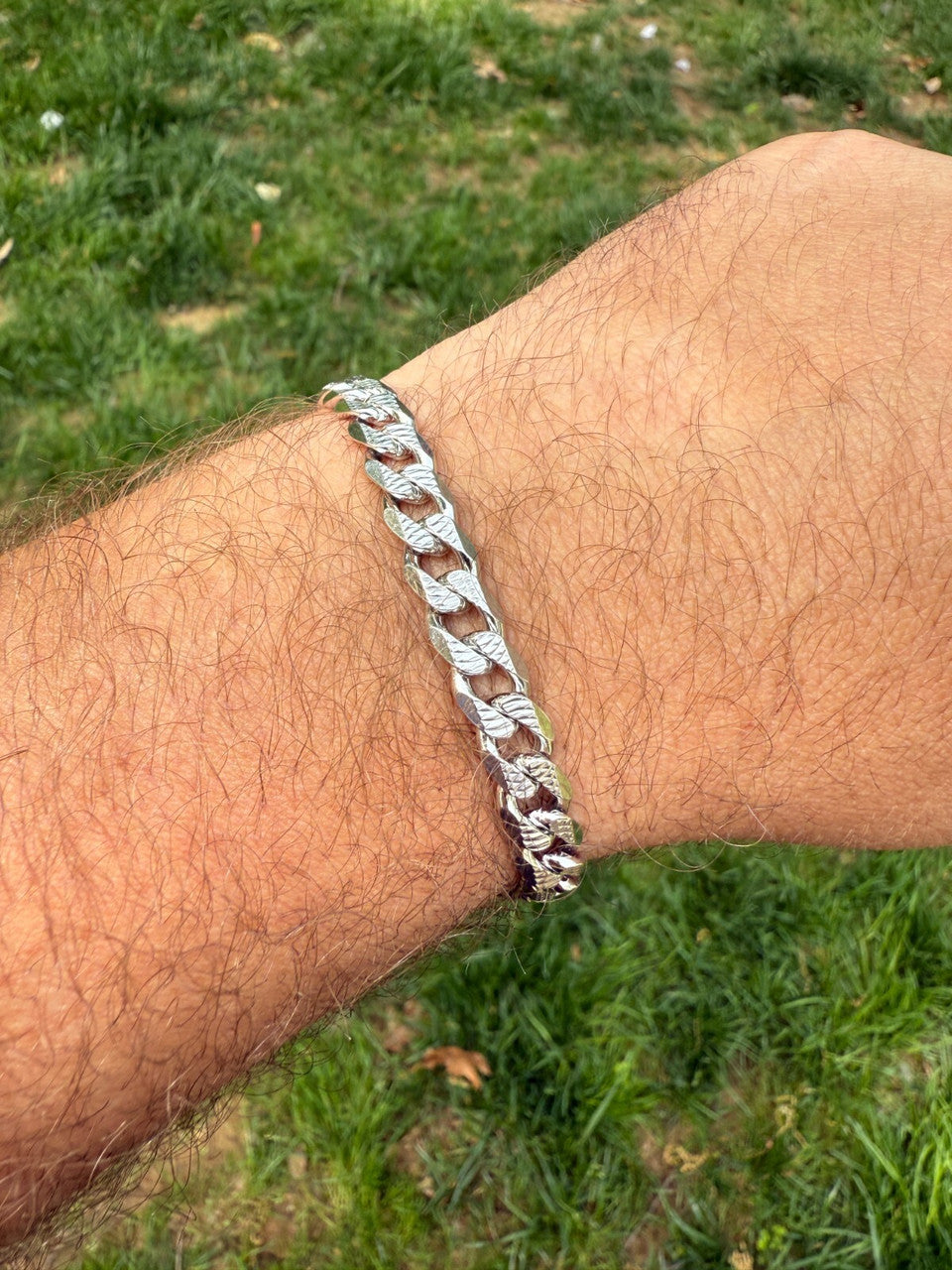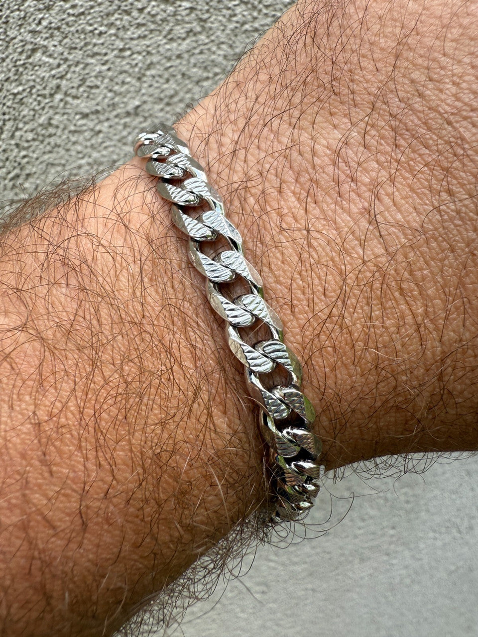 Mens Miami Cuban Bracelet Diamond Cut Solid 925 Silver - Rhodium Finished