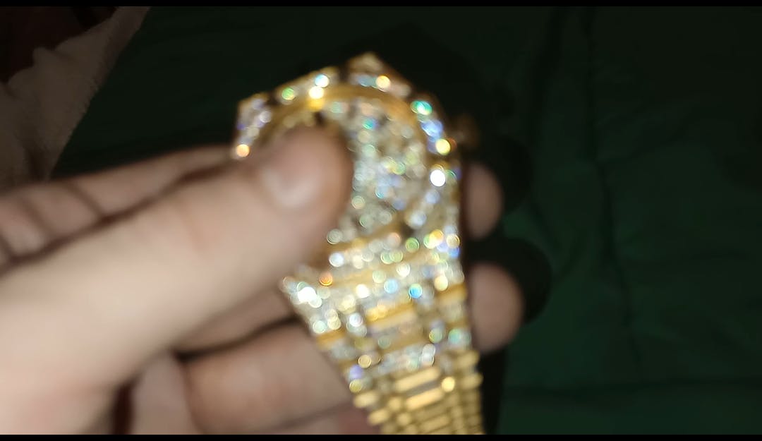 Beautiful stones, and gold plating is nice. Construction of the steel is a nice aesthetic on the band, case, bezel, ect. I dig the date function and the markers for time. Cool skeleton back and sapphire glass is a sweet bonus. I got the automatic version. However, I did not know how to use a screw down crown. This is my first watch. So I cross threaded it because I did not match up the threads before screwing on. Unfortunately I went to a jewelry store and they told me they couldn't find parts for it. So I asked Harlem Bling and they said they couldn't help me either. So now I have this beautiful piece but it's always at risk of being ruined and not able to work from water getting inside. Kind of a bummer. Hopefully I can get a repair before it stops working completely. Beautiful piece besides that.