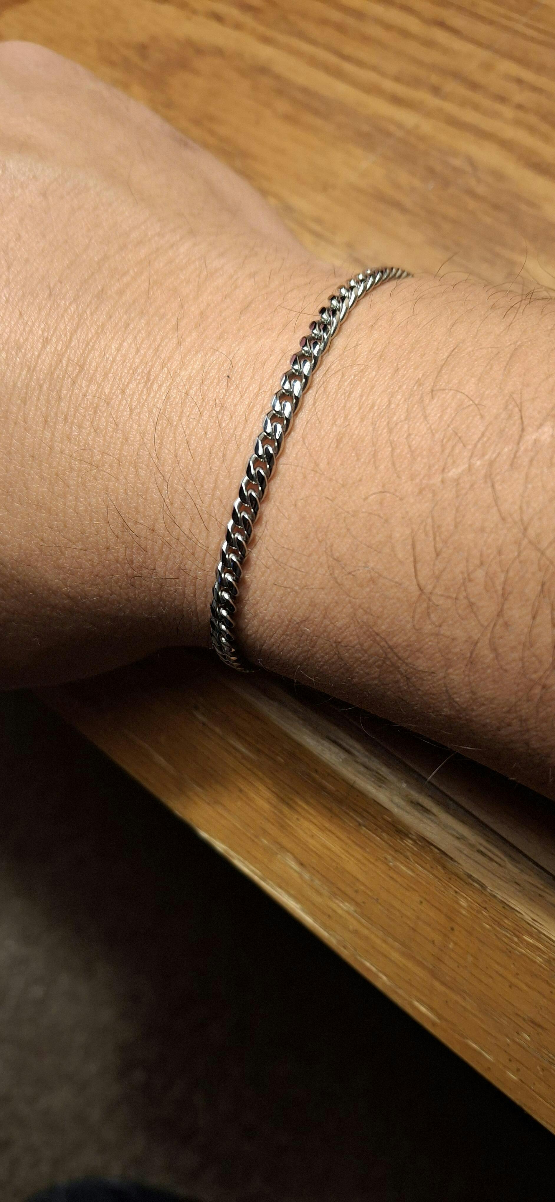 Got the stainless steel 4mm bracelet 8". it fits great not 2 loose not 2 tight just right. Very satisfied, 4 sure coming back. Let's get it Harlem Bling!!! 💪🏼🫶🏼