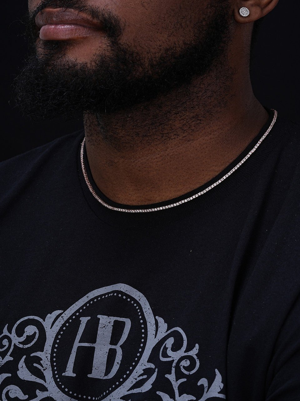 Introducing the Micro Tennis Chain Necklace Iced Out with CZ Stones by HarlemBling. This exquisite chain is available in 14k Gold Vermeil, Rose Gold Vermeil, or 925 Silver, featuring dazzling 2mm CZ stones for a luxurious look. The necklace comes in lengths ranging from 14 to 28 inches, and finishes including Rhodium (White), 14k Yellow Gold, and Rose Gold. The sleek design and high-quality craftsmanship make it a perfect accessory for any occasion. Elevate your style with this chic and elegant 2mm Tennis Chain, a must-have in the CHAINS category from HarlemBling.