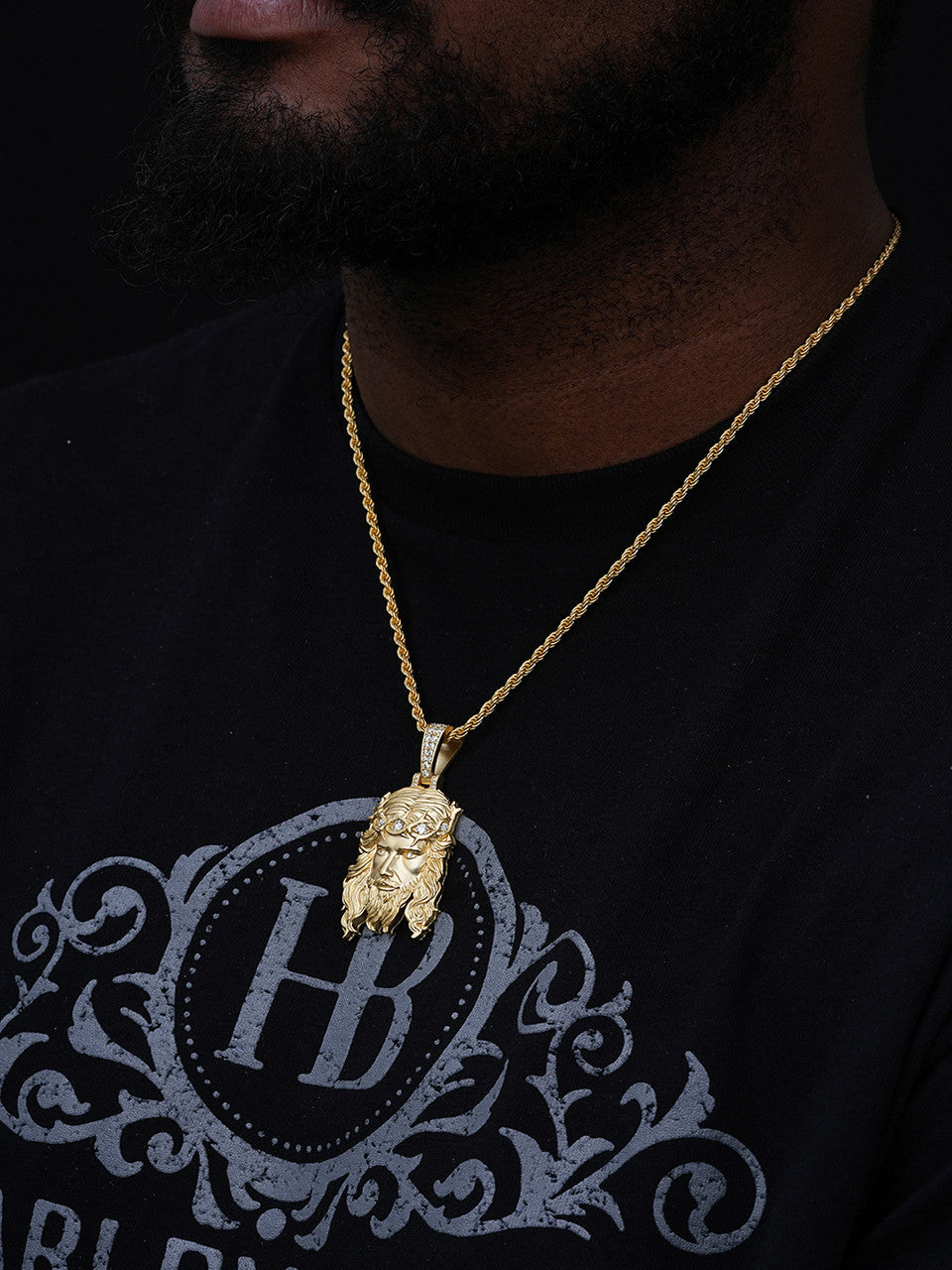 Introducing the MOISSANITE #1 Bestseller Jesus Piece Pendant by HarlemBling, a stunning piece in Sandblasted Matte Finish. Crafted with precision in 14k Gold Vermeil over 925 Silver, this pendant is available in 3 sizes - 1.5", 2", and 3". The intricate design and high-quality moissanite stones add a touch of luxury and pass the diamond tester. Stand out with this unique gold Jesus piece that exudes elegance and style. Whether you choose the Small, Medium, or Large size, this pendant is sure to make a statement. Elevate your jewelry collection with HarlemBling's exquisite piece.