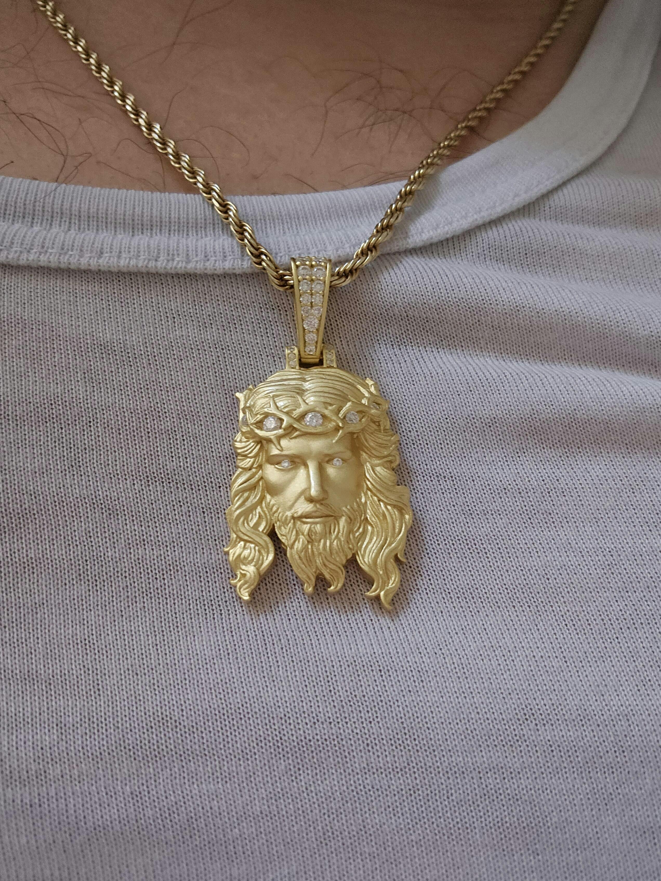 MOISSANITE #1 Bestseller Jesus Piece Pendant - Sandblasted Matte Finish 14k Gold Vermeil 925 Silver - 3 Sizes 1.5"-3"