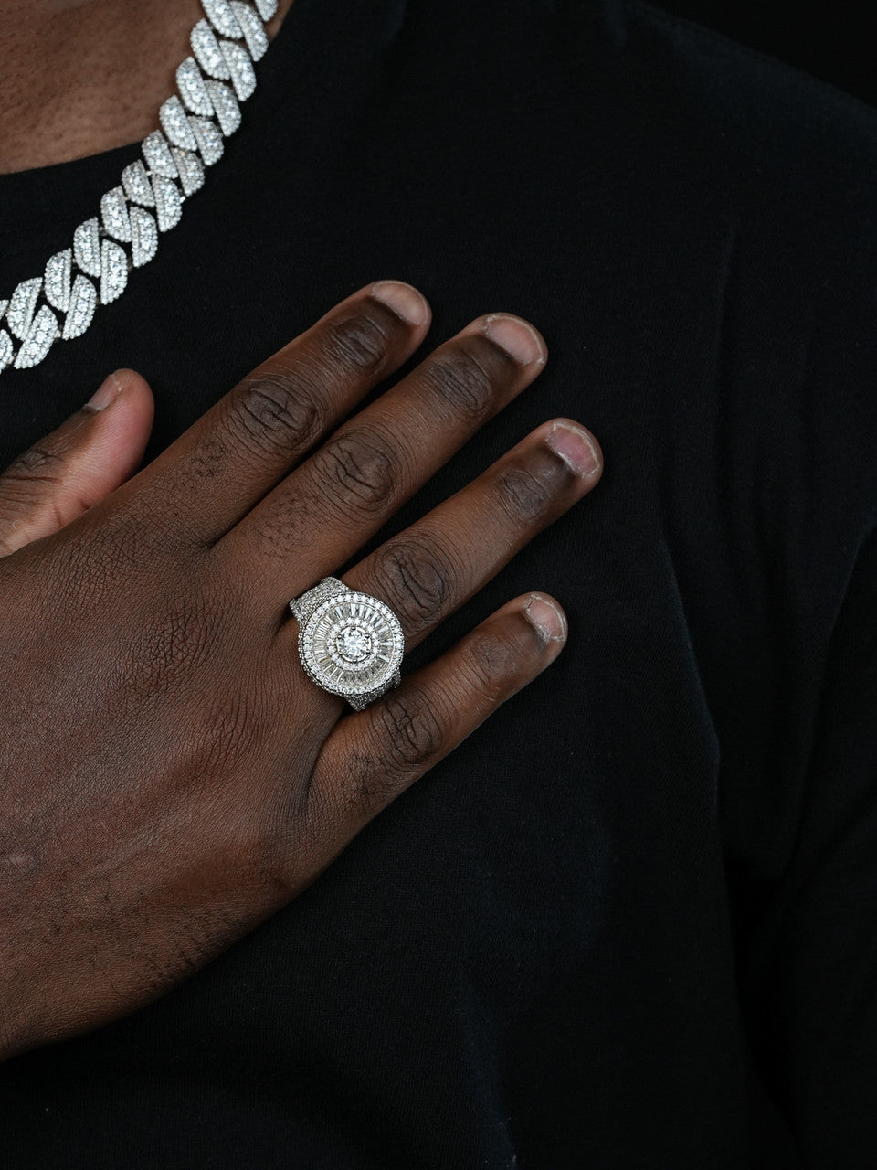 Gorgeous men's moissanite ring. One of the largest most iced out rings we made!