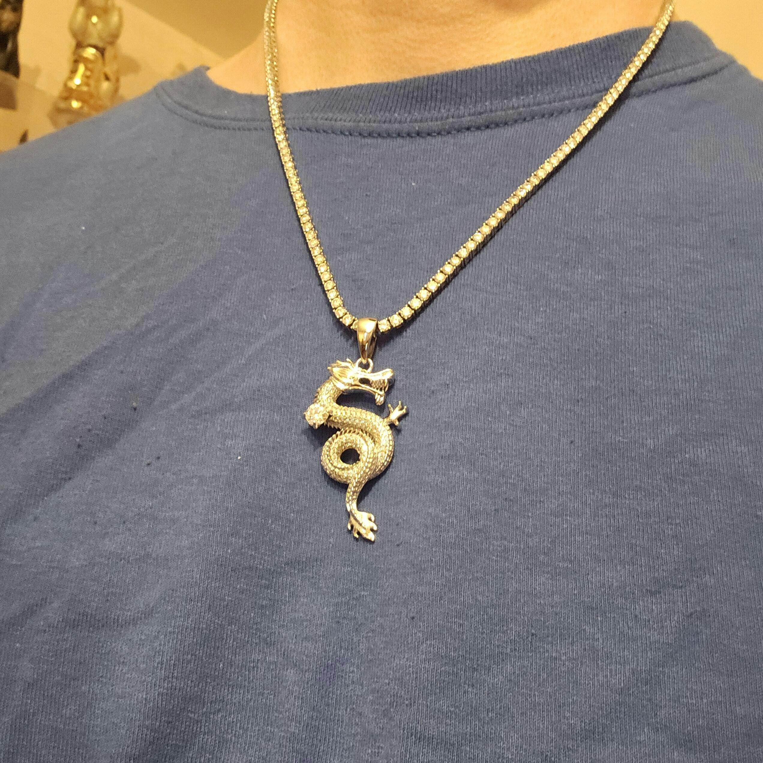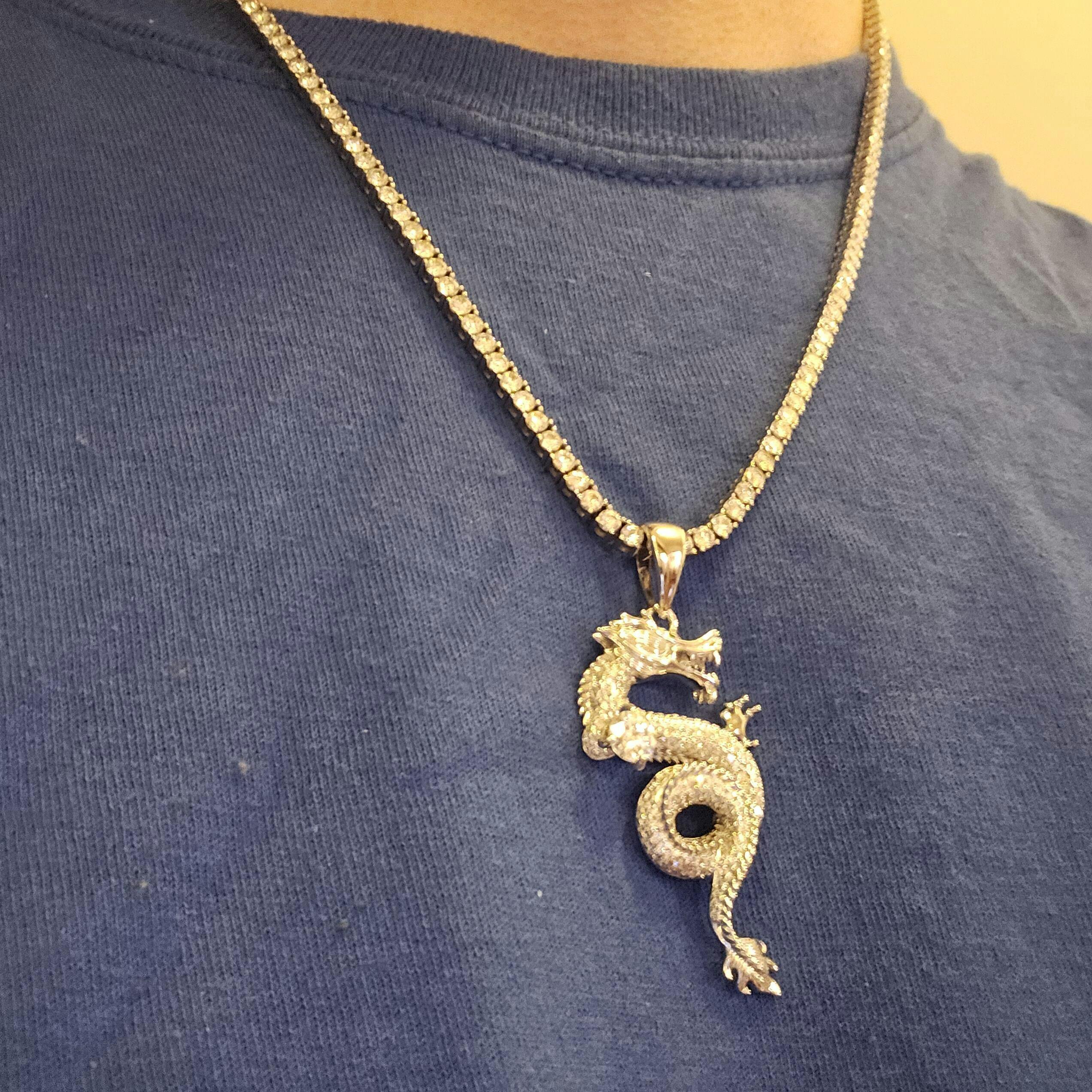 MOISSANITE 3D Dragon Hip Hop Pendant - 14k Gold Vermeil Or 925 Silver - Medium 2.25"