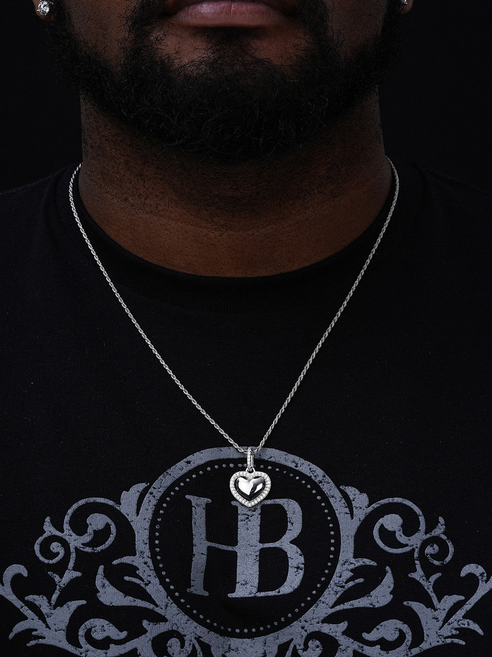 MOISSANITE 3D Puffed Heart Shaped Pendant - 925 Silver - 3 Sizes 0.75"-1.5"