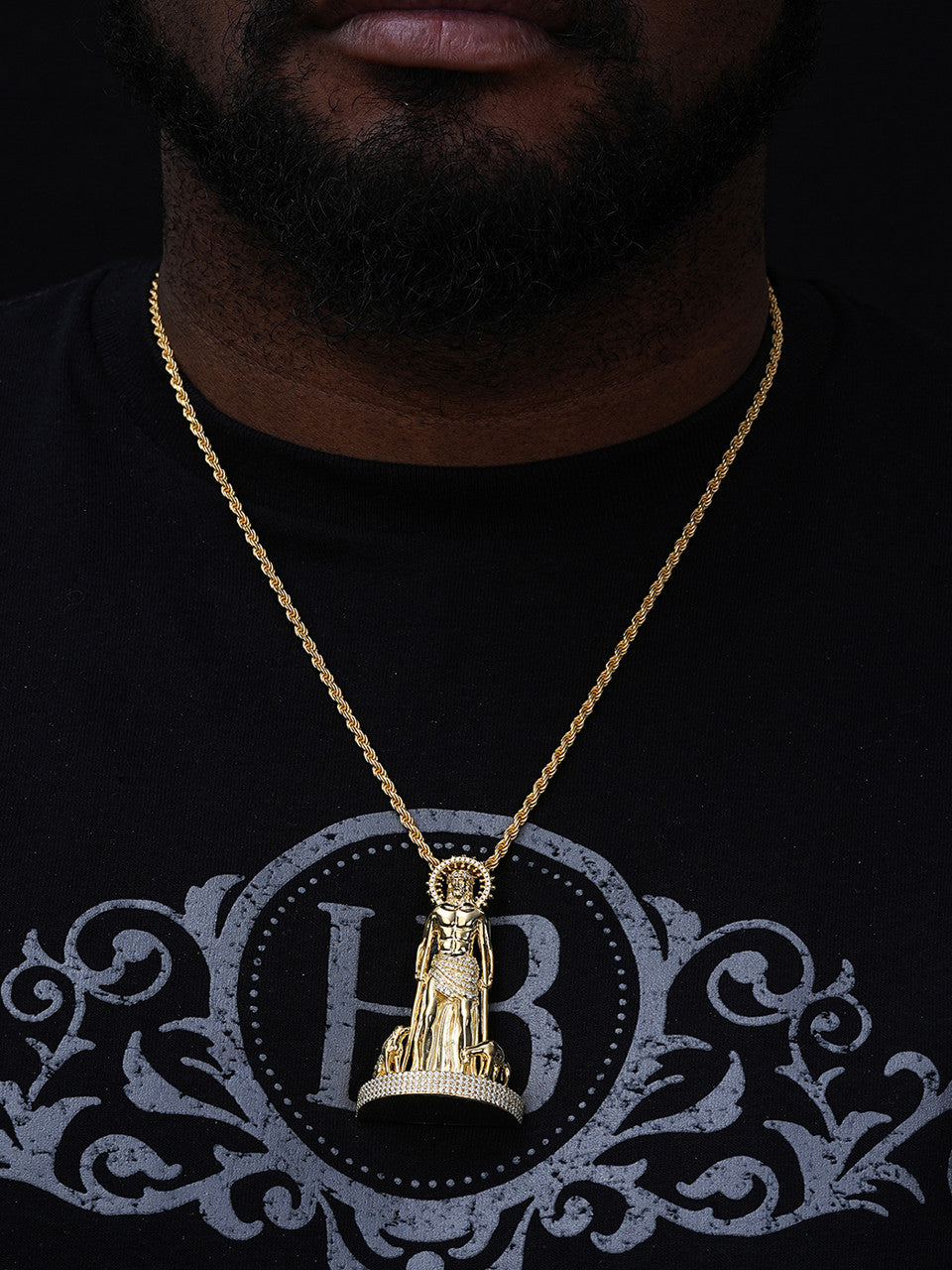 MOISSANITE 3D Saint Lazarus Pendant - 14k Yellow/Rose Gold Vermeil or 925 Silver - Large 2.5"
