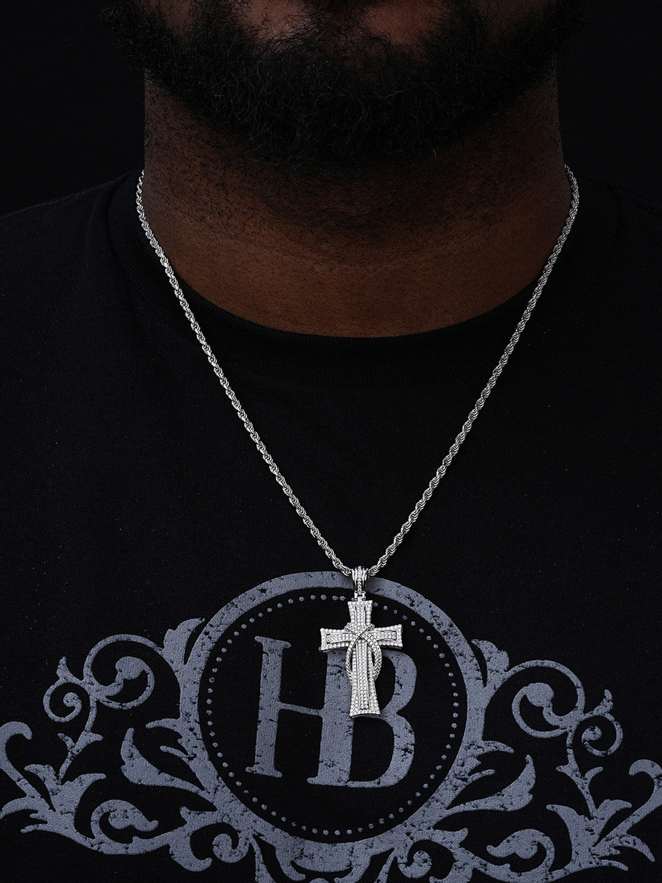 MOISSANITE 90s Classic Bust Down Cross - 14k Yellow Gold Vermeil Or 925 Silver - Medium 2"