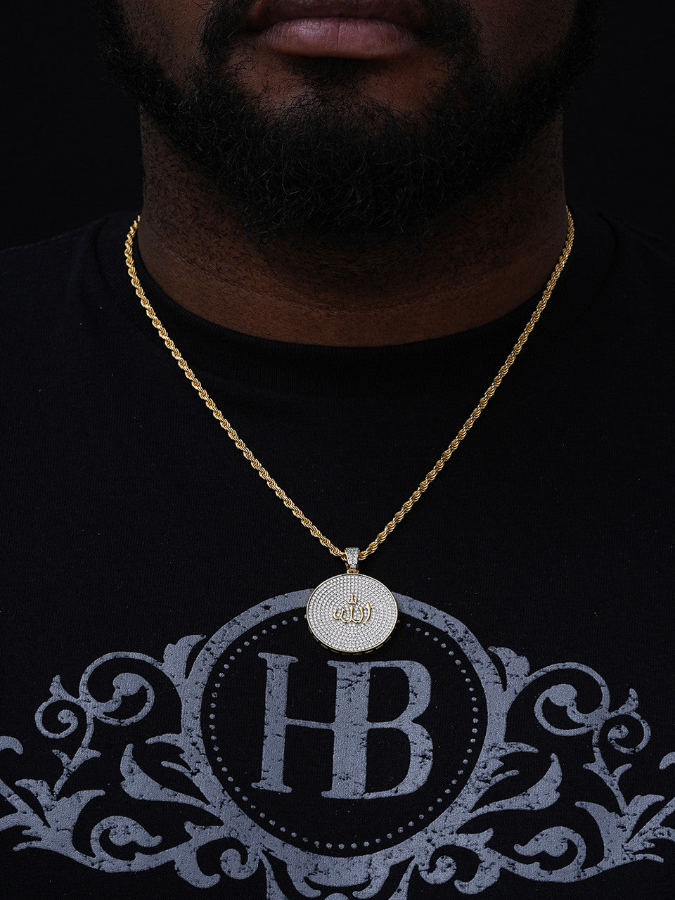 MOISSANITE Allah Medallion Islamic Pendant - 14k Gold Vermeil Or 925 Silver - Small 1.5"