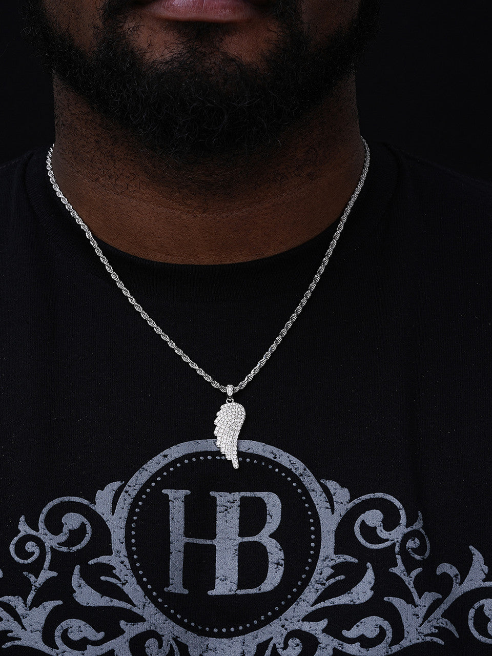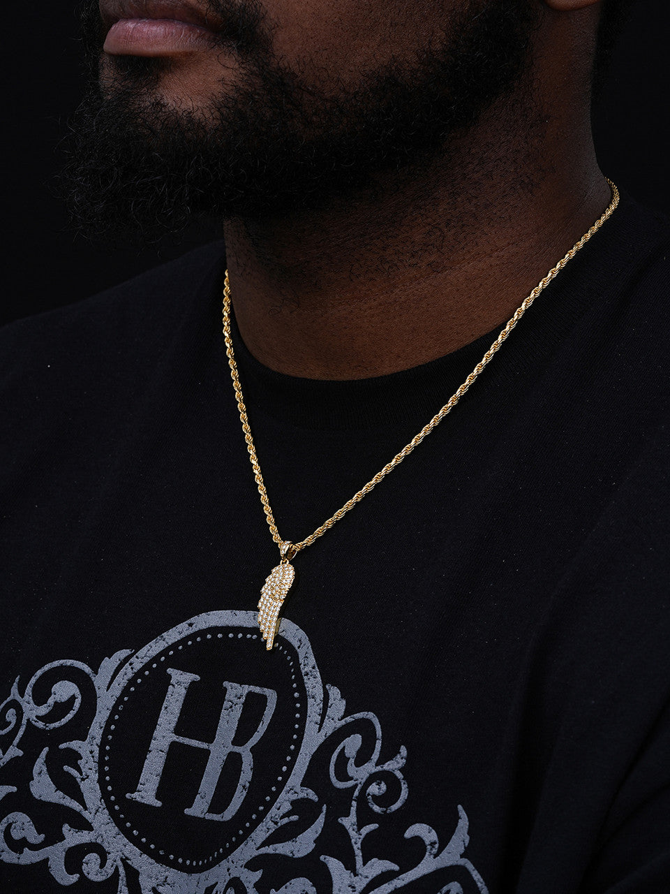 MOISSANITE Angel Wing Iced Out Pendant - 14k Yellow Gold Vermeil or 925 Silver - Small 1.5"