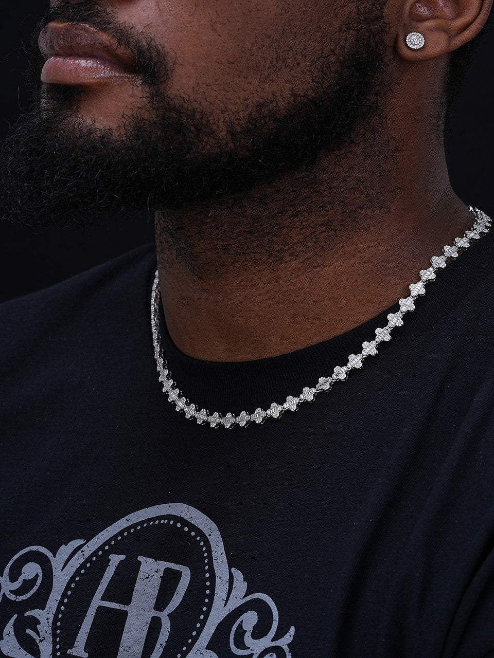 MOISSANITE Baguette Clover Chain Necklace Iced Out - 925 Silver - 8mm - 14"-24"