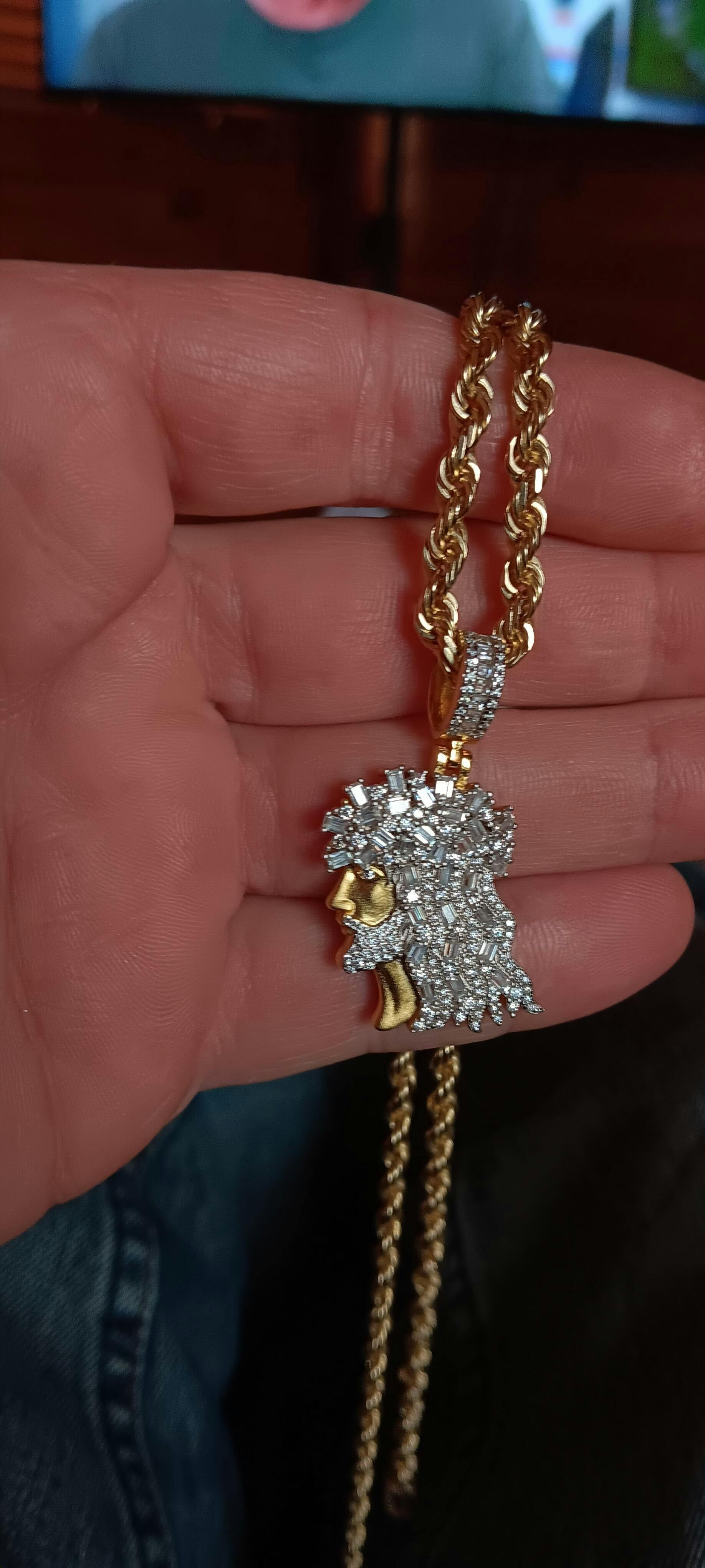 Medium is 1.75" & weighs 32 grams (fits chains up to 10mm thick) 11.55 ct moissanite!!! (3.65ct round stones & 7.9ct baguettes)