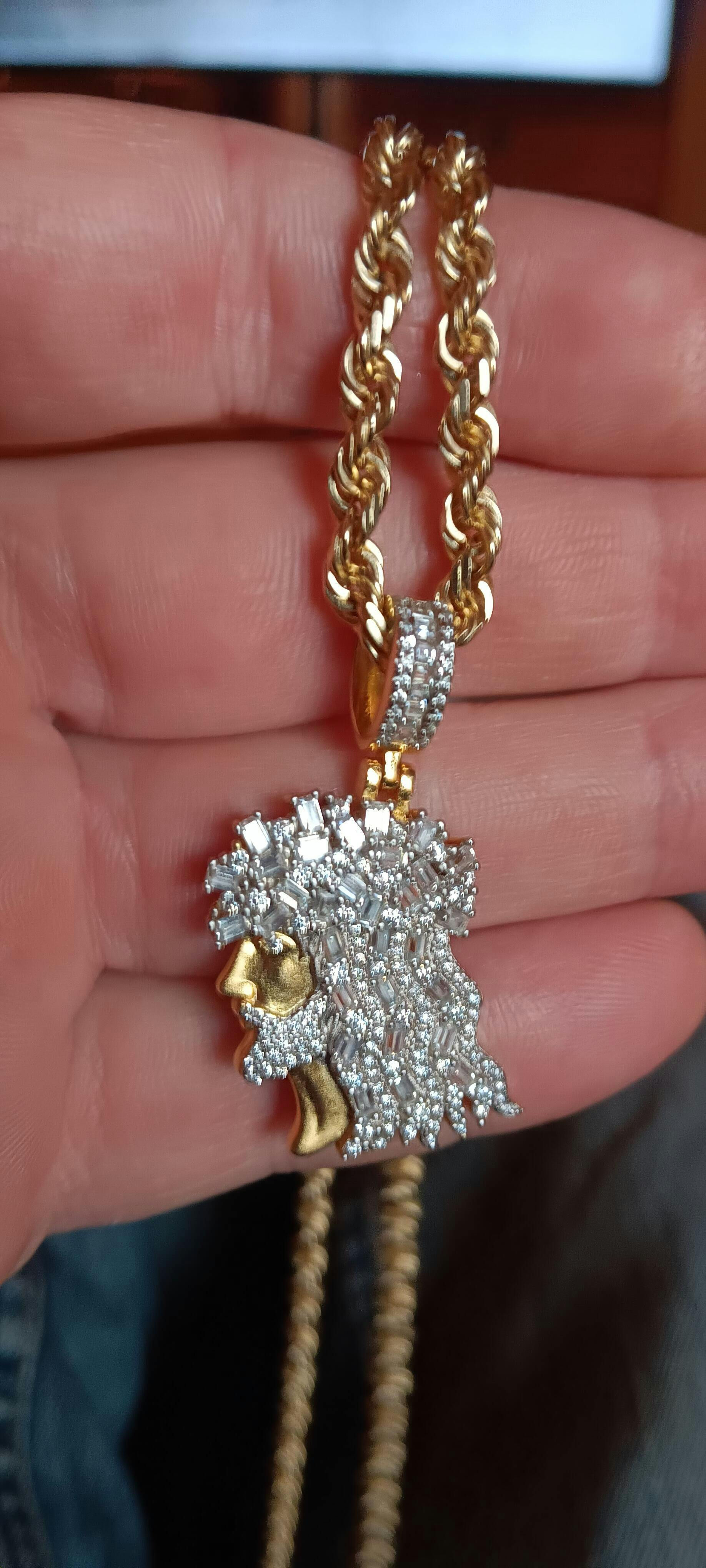 Large is 2.5" & weighs 62 grams (fits chains up to 14mm thick) 20.9 ct moissanite!!! (9.4ct round stones & 11.5ct baguettes)