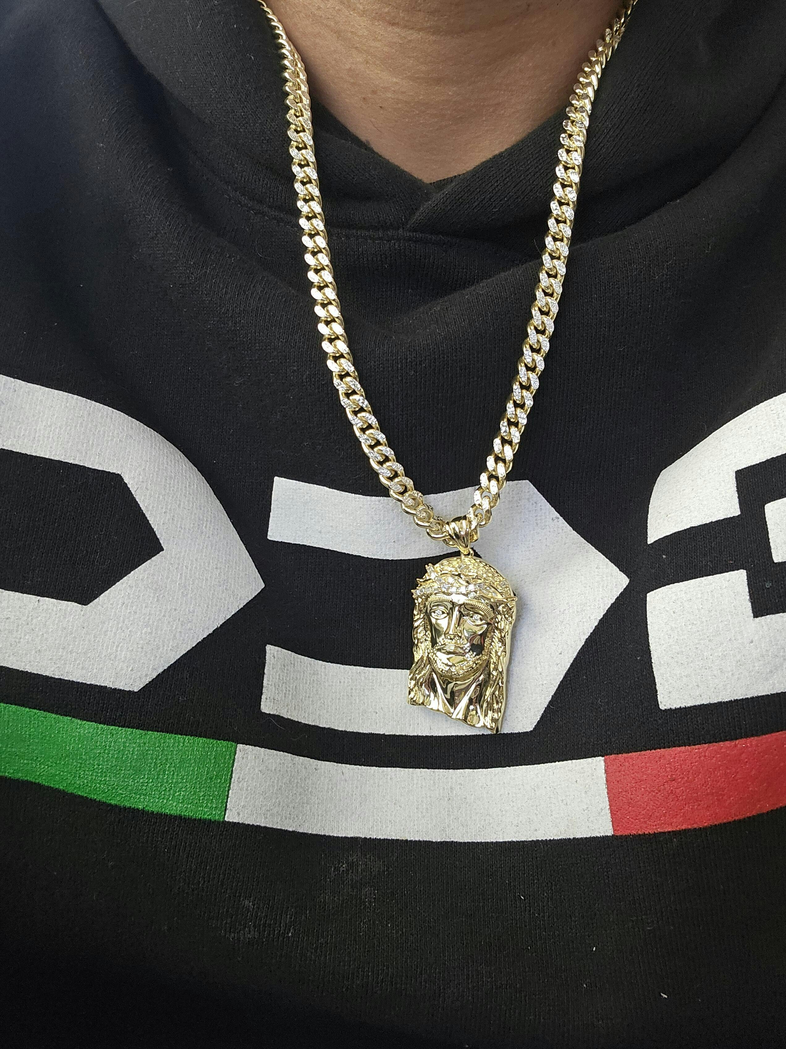 If you purchased a Cuban chain 5 mm w the box lock or bigger you will need the large Jesus piece , the box lock will not fit through the bale on the medium Jesus piece. Also company should take note of this if you see the order being combined.