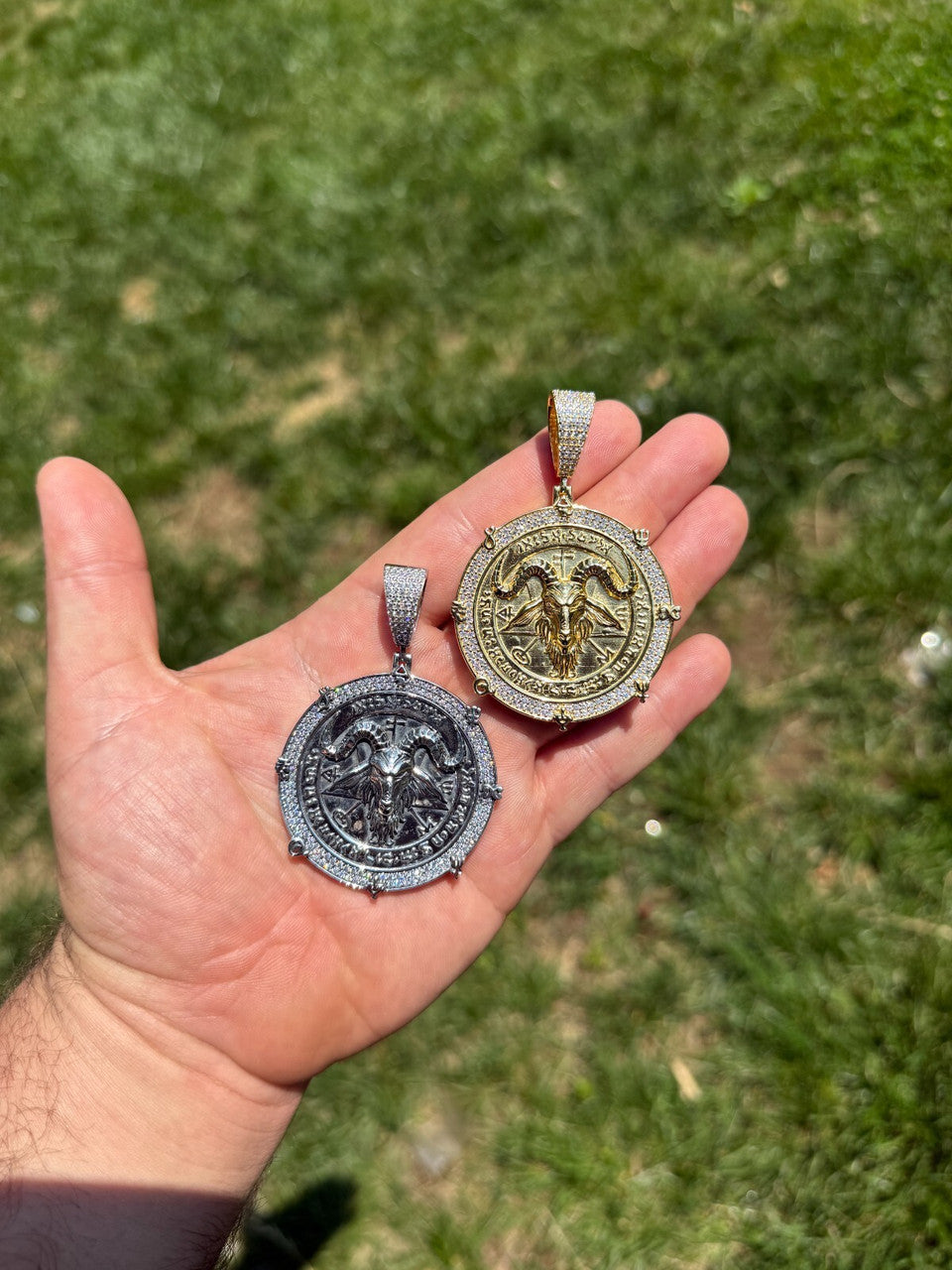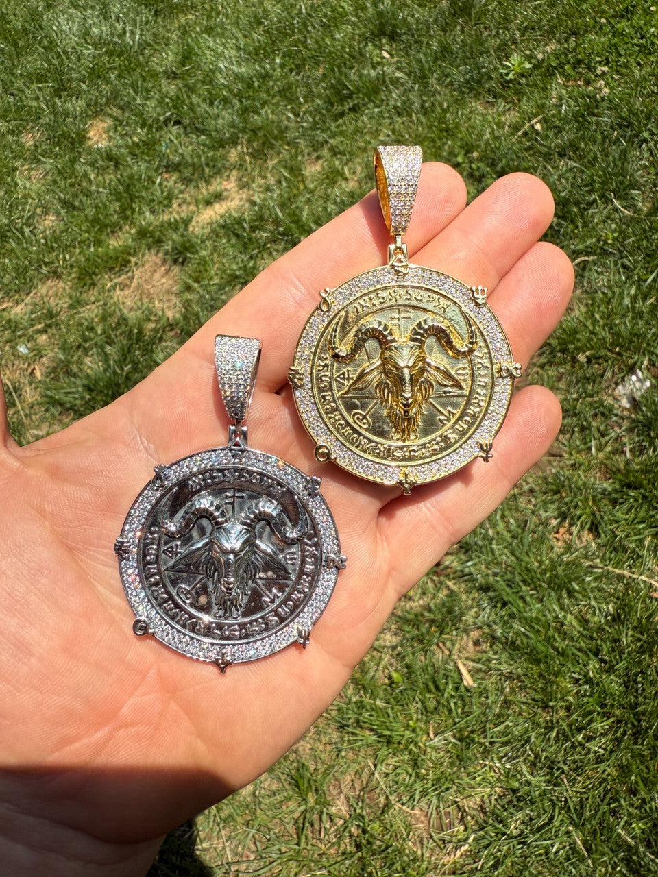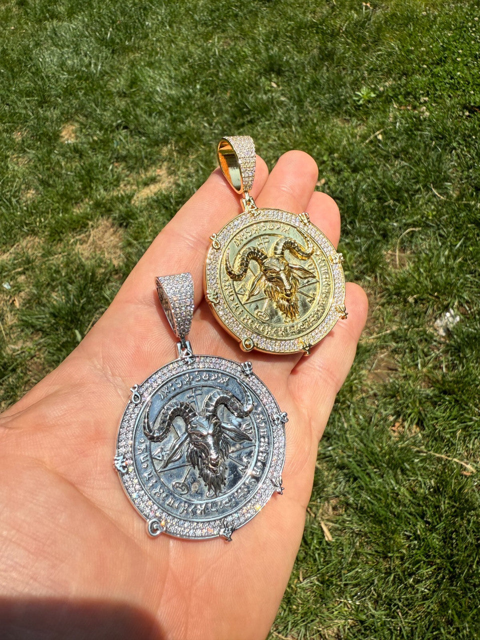 VERY DETAILED - 3D goat head with ocult symbols & iced out with moissanite