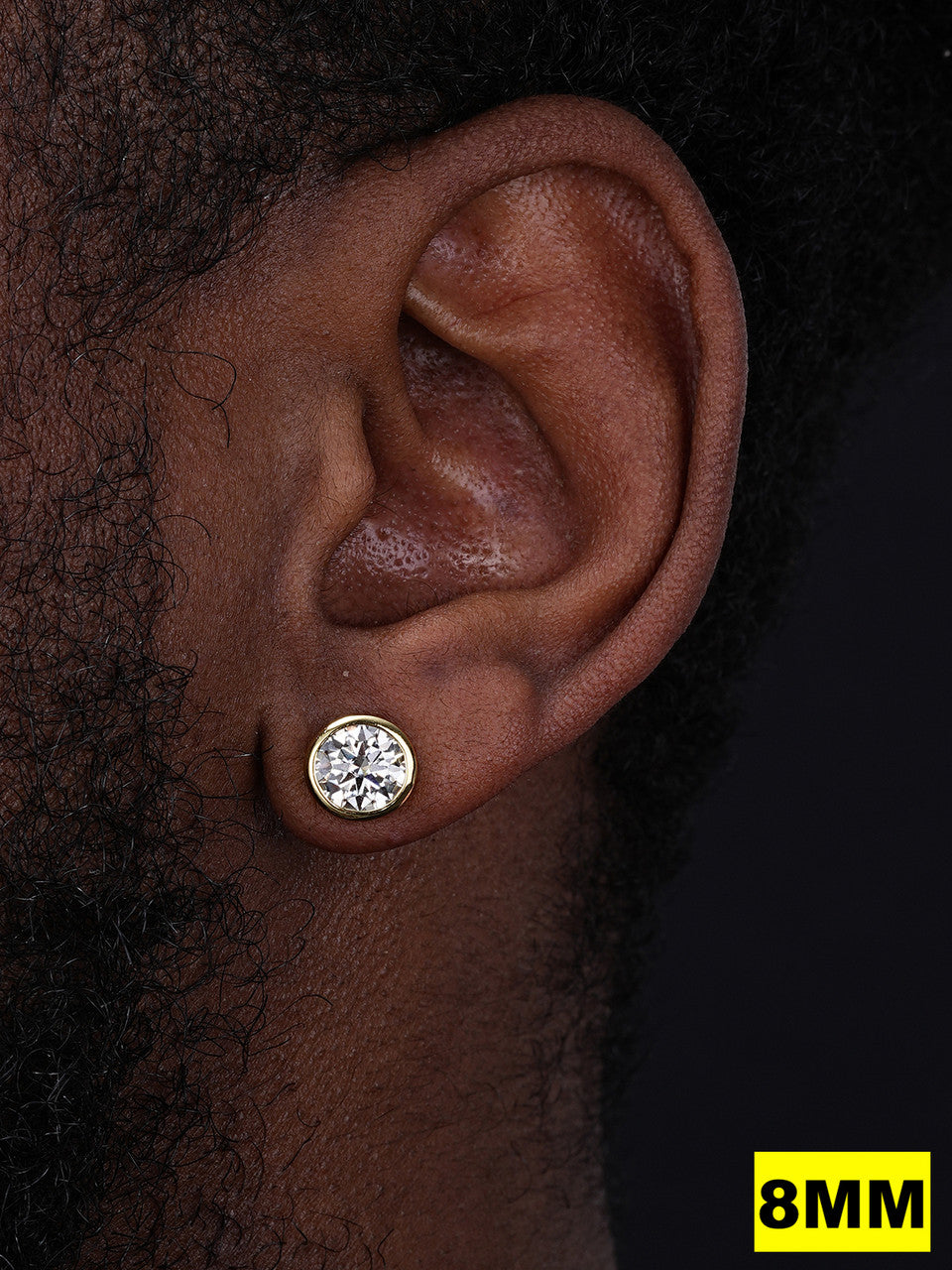 10mm each stone (4ct EACH stone) - noticeable for a HUGE $$$ look for men or women for those that love attention (7.9 grams)