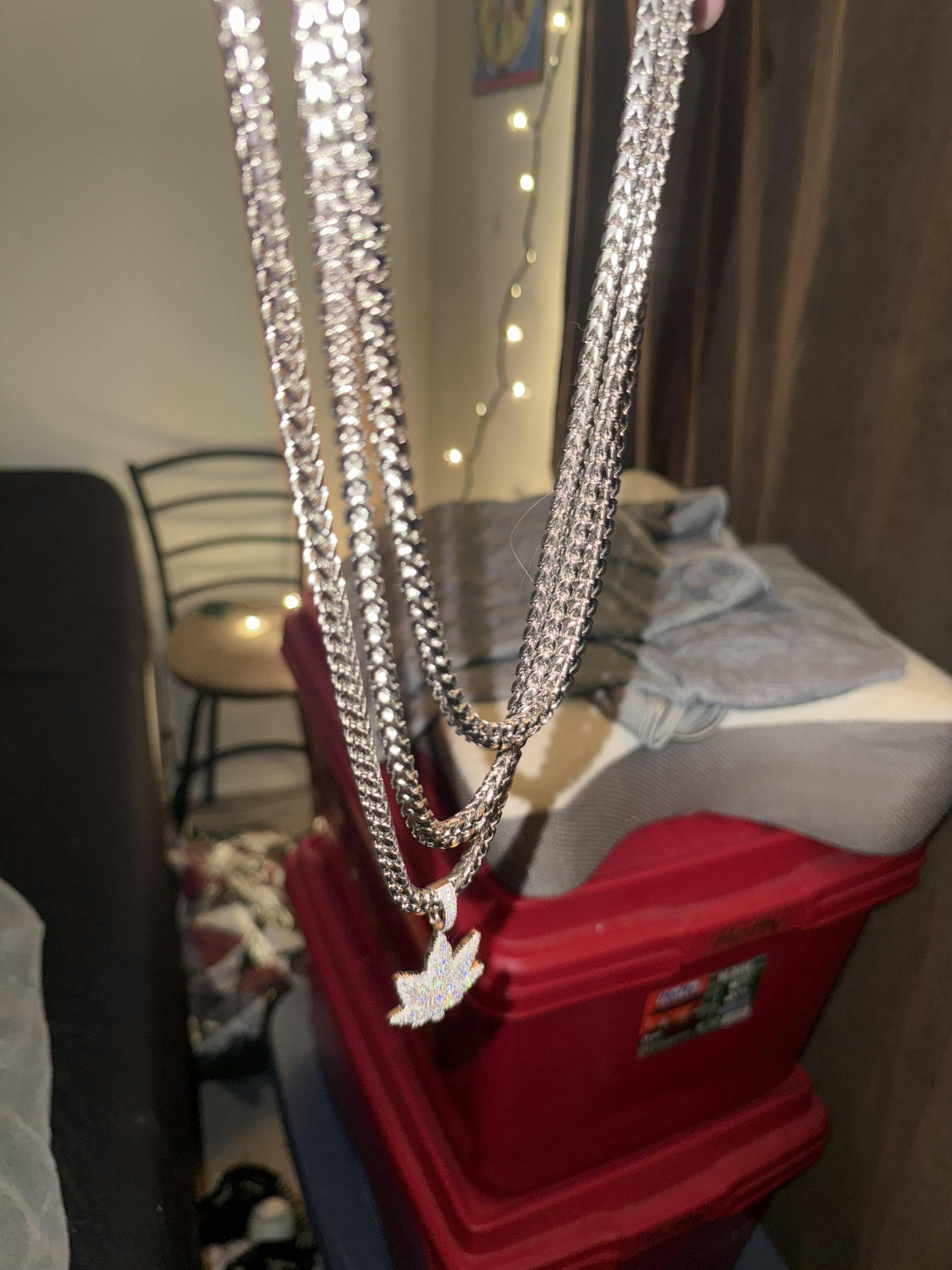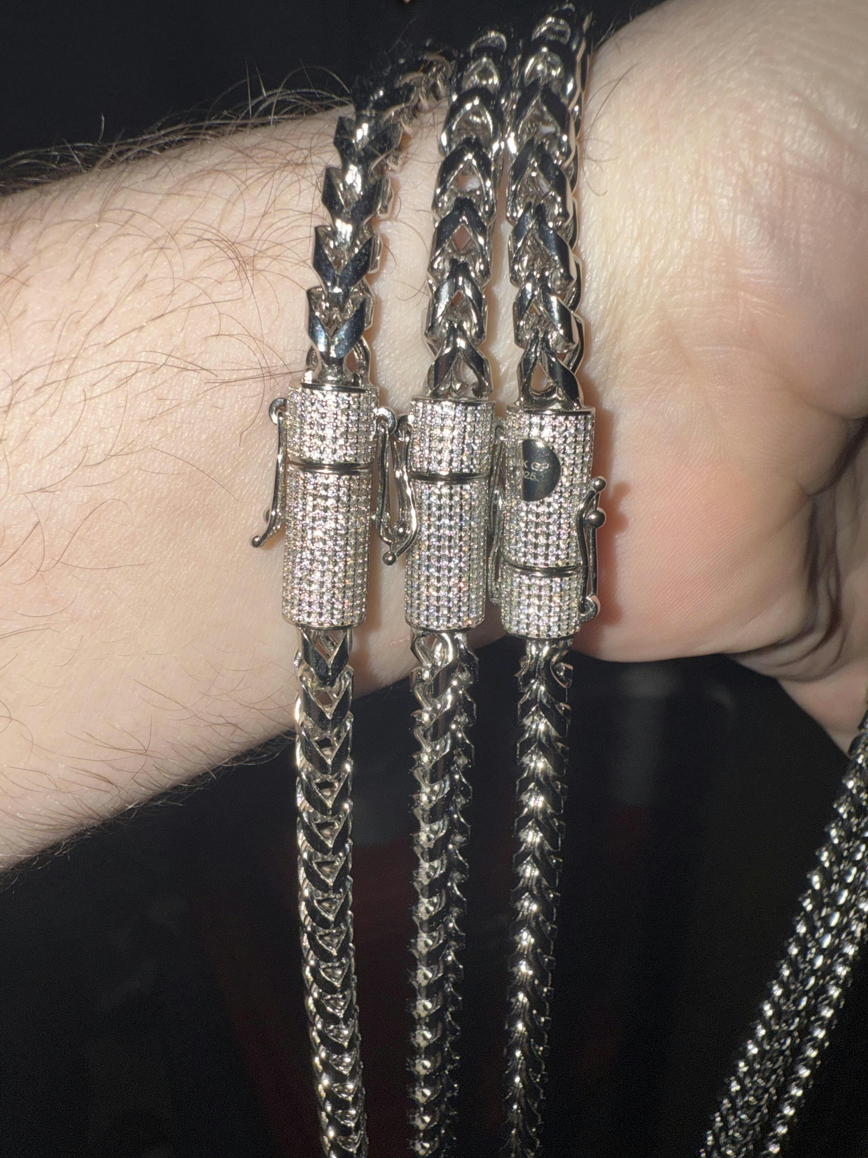 MOISSANITE CLASP Franco Chain Necklace - Stainless Steel W. 925 Silver Clasp - 18"-30" - 4mm-6mm