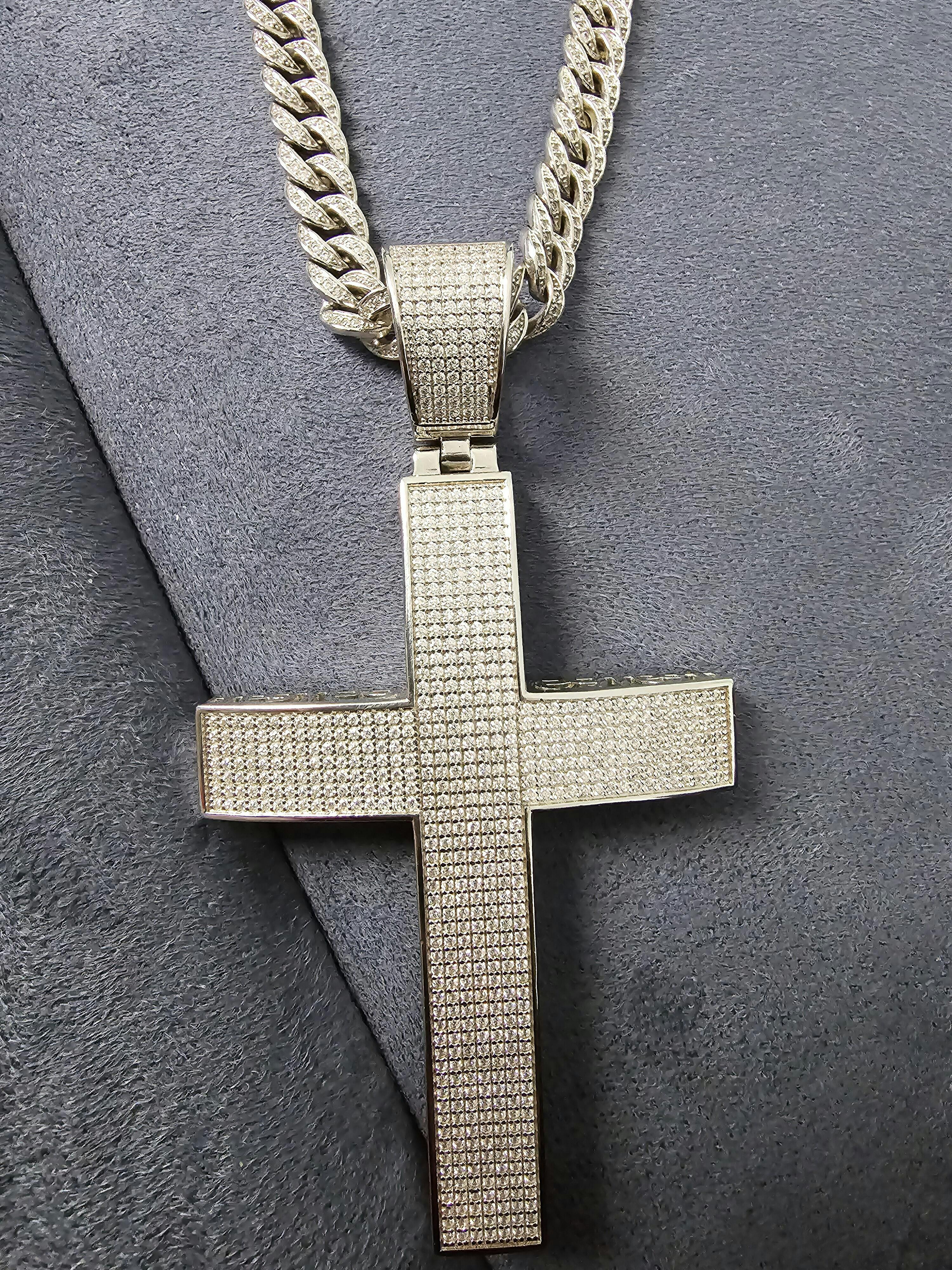 MOISSANITE Classic Iced Out Cross Pendant - 925 Silver - Huge 4"