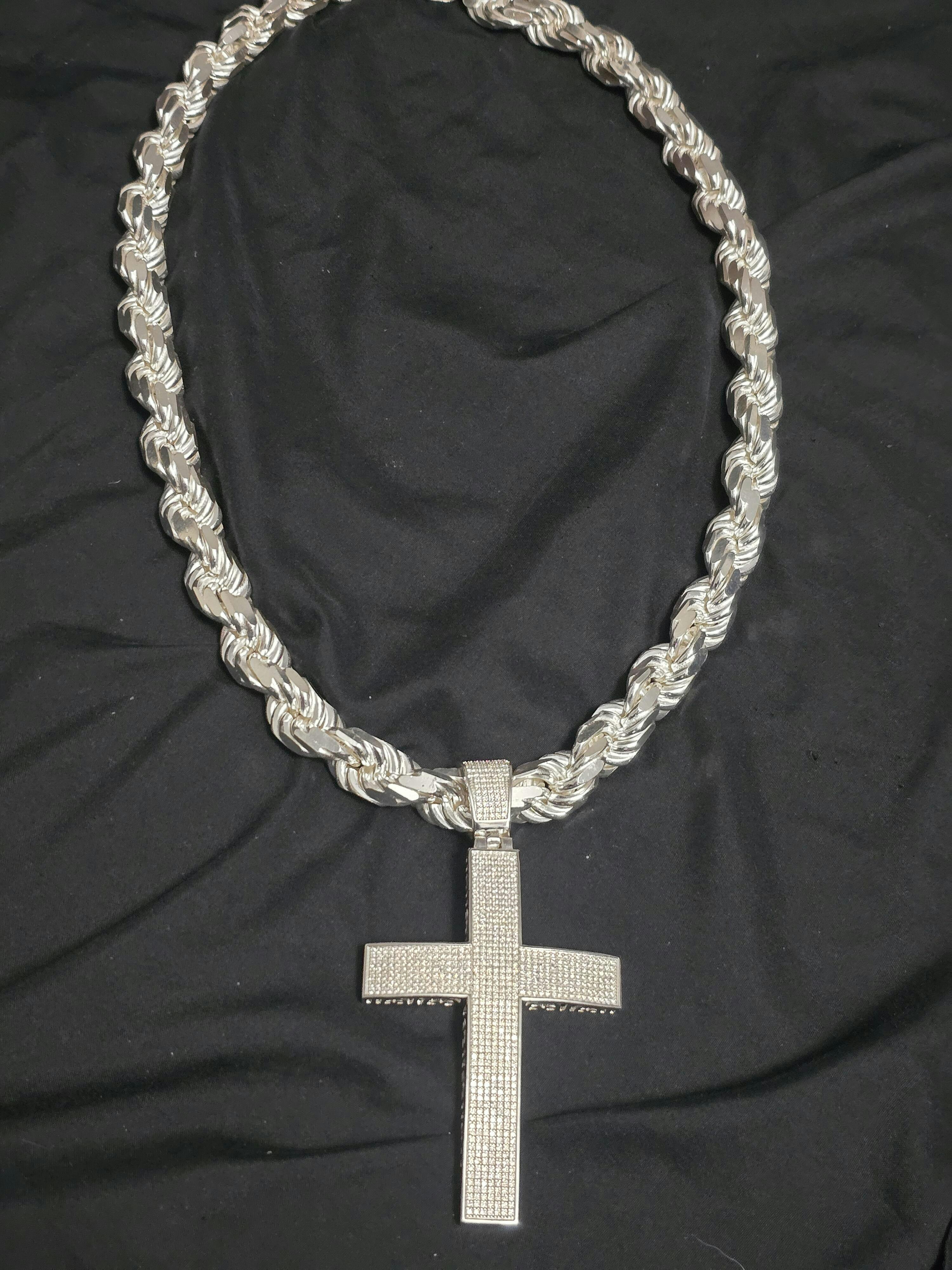 Gorgeous solid 925 silver men’s cross handset with moissanite stones