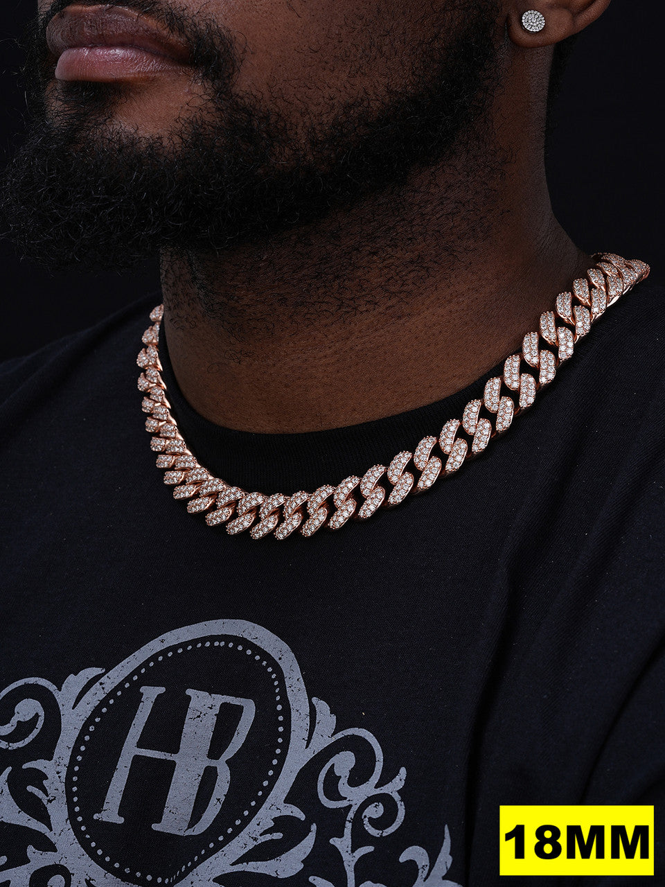 MOISSANITE Classic Miami Cuban Link Chain Necklace Iced Out - 14k Rose Gold Vermeil 925 Silver - 6mm-18mm - 16-30"
