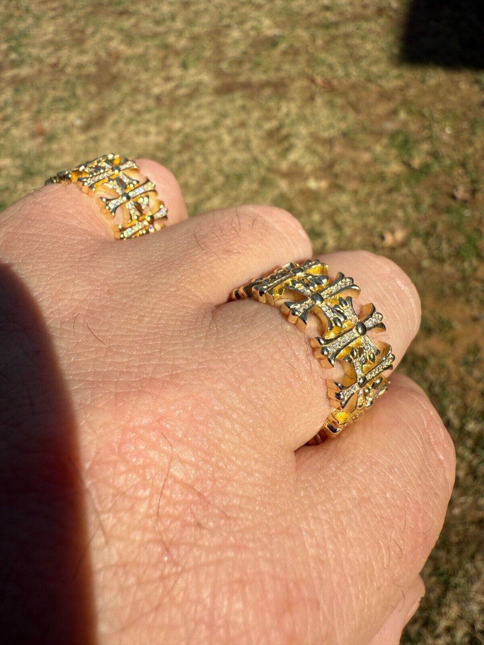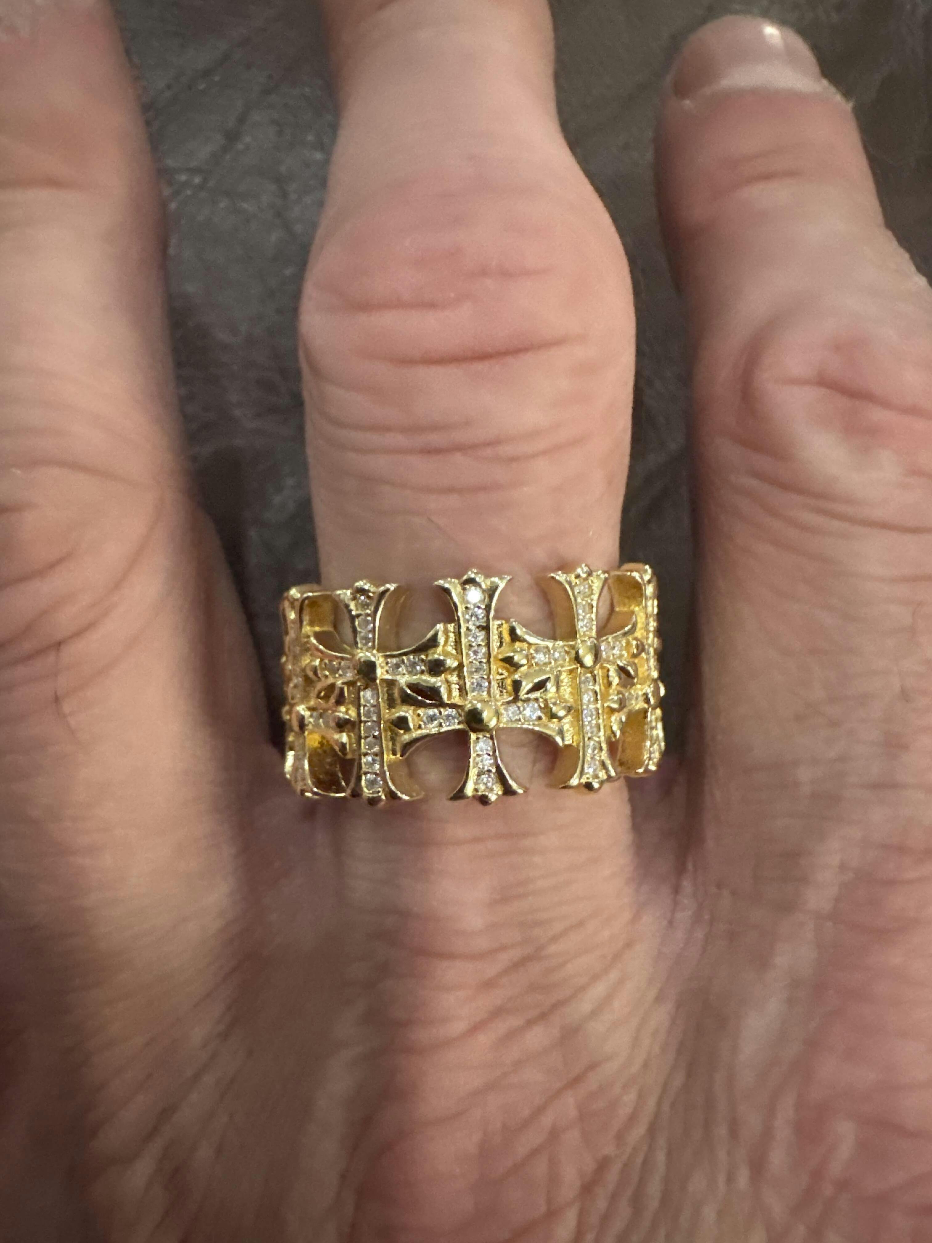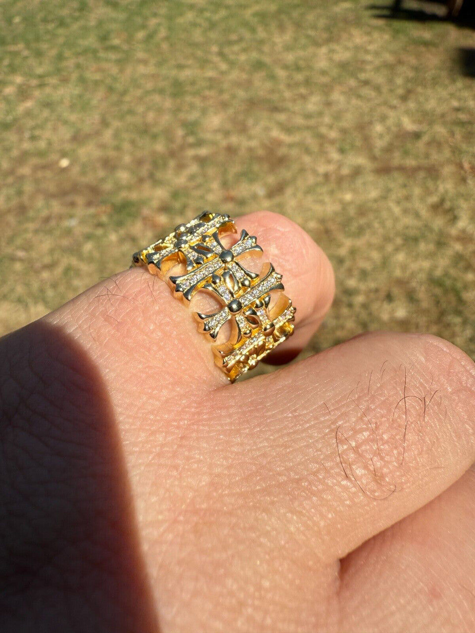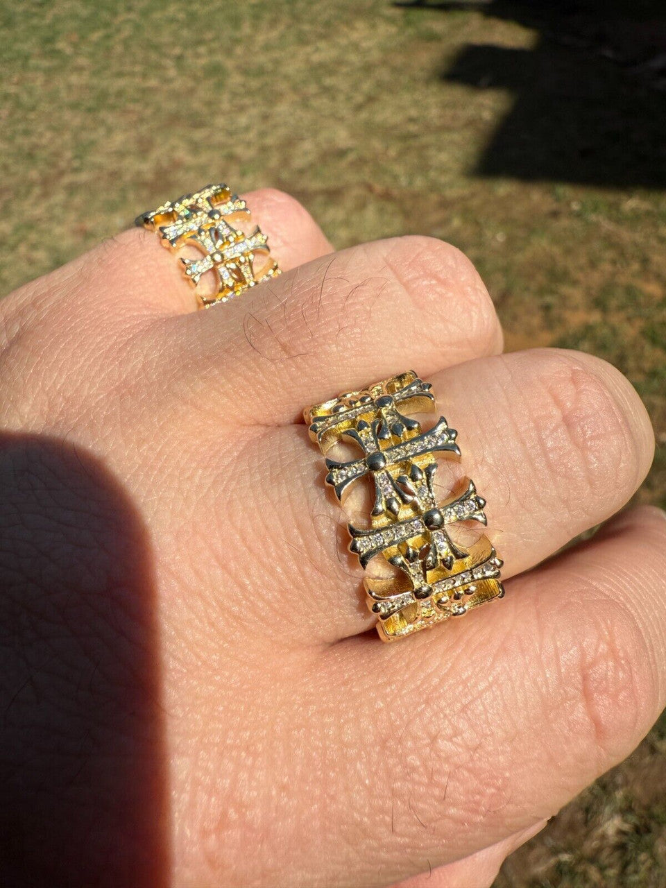 I have to first give a big thanks to Mark and the team for allowing me to return it multiple times. I was way off on the size the first time. Harlem Bling paid shipping both ways and the second one was way too big but a lot closer but this was my fault, I used some print out ring sizer. They again paid shipping both ways for a second return. I now have a size 11 and right before it came I got some plastic ring sizers you can request for free from a few jewelers and I knew the 11 would fit and it did, a 10 1/2 might fit a little more snug but there are no half sizes as it would probably make the seamless design impossible. There’s a little wiggle room but it’s not going to fall off or anything and requires a decent pull to get it over my knuckle. It looks great especially with my Harlem Bling watch! It is stamped 925 too, took me a while to find it but once you see it it’s like finding Waldo, IYKYK. Would hit harder if I had the stones on all sides tennis bracelet 😏